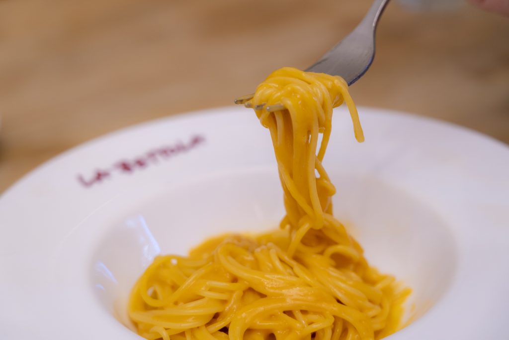ソースと麺の和え方については「イタリア人はソースを作ってパスタを入れて、混ぜるだけですぐ盛り付けるんです。僕は当時『なぜ塩コショウをしないの!?』と驚きました。とにかく、彼らはパスタを炒めないんですよ。塩もコショウもしないし、手抜きだと思いました。でも、実際に食べてみたらすごくおいしくて。あれはびっくりしましたね。パスタにしっかり塩味をつけるので、塩コショウが必要ないんです。きちんと塩味のついたパスタに、ソースを和えるだけで十分。そこで、ジャーッと炒めちゃうとソースの水分が蒸発しちゃいますからね」と、麺を炒めない必要性についても語りました。