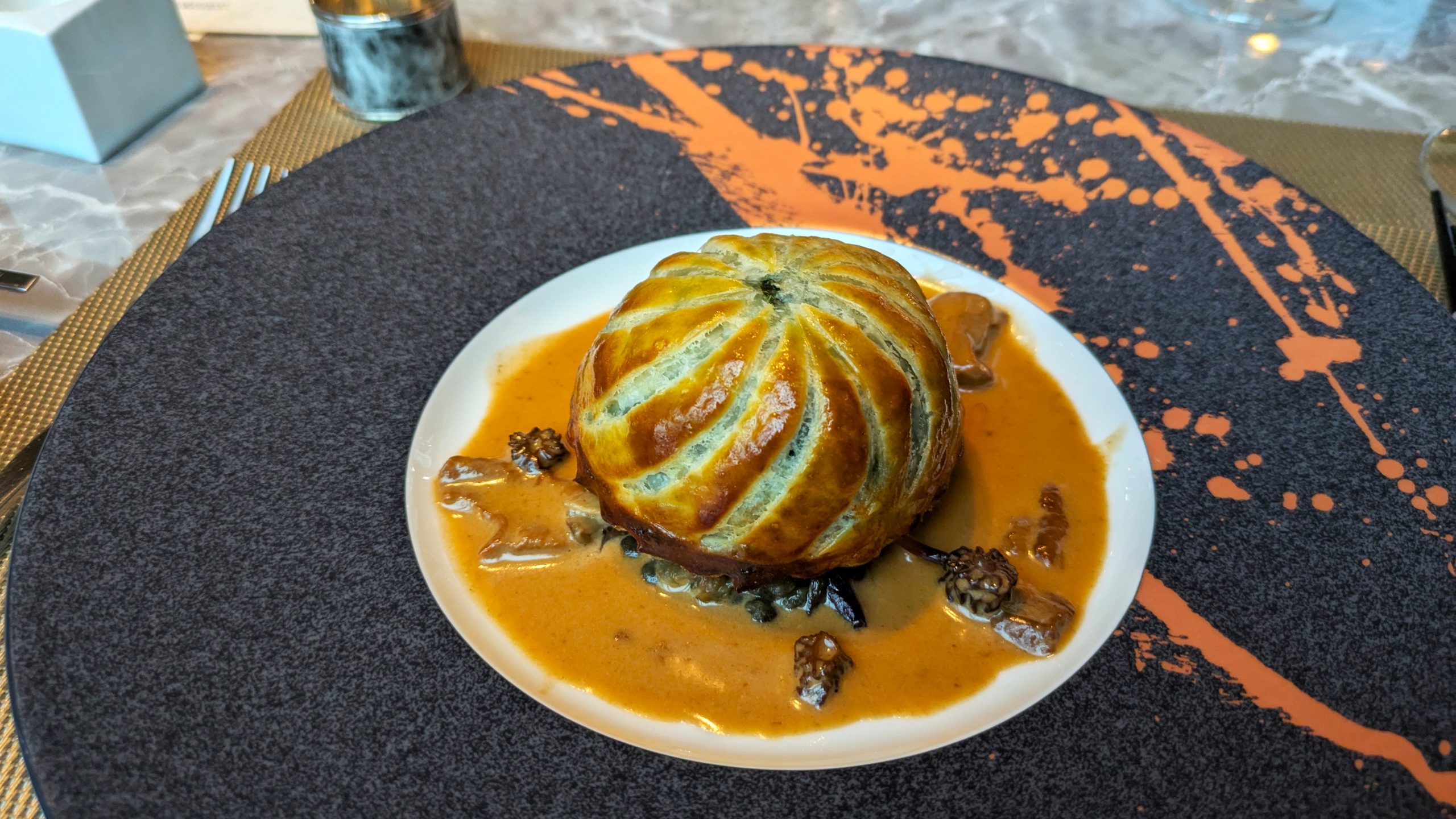トゥルトとはフランスの伝統的なパイ包み料理で、「小さな帽子」という意味があるのだそう。パイの香ばしさに濃厚なソースが絡み、海老の甘みが引き立つ一皿。