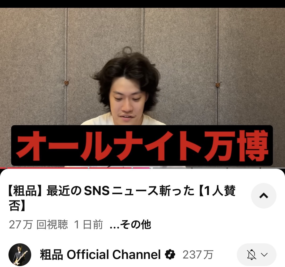 【大阪・関西万博】霜降り明星・粗品さんが「オールナイト万博」に「わしらの立場わぇ」と嘆き!? YouTube動画「一人賛否」で