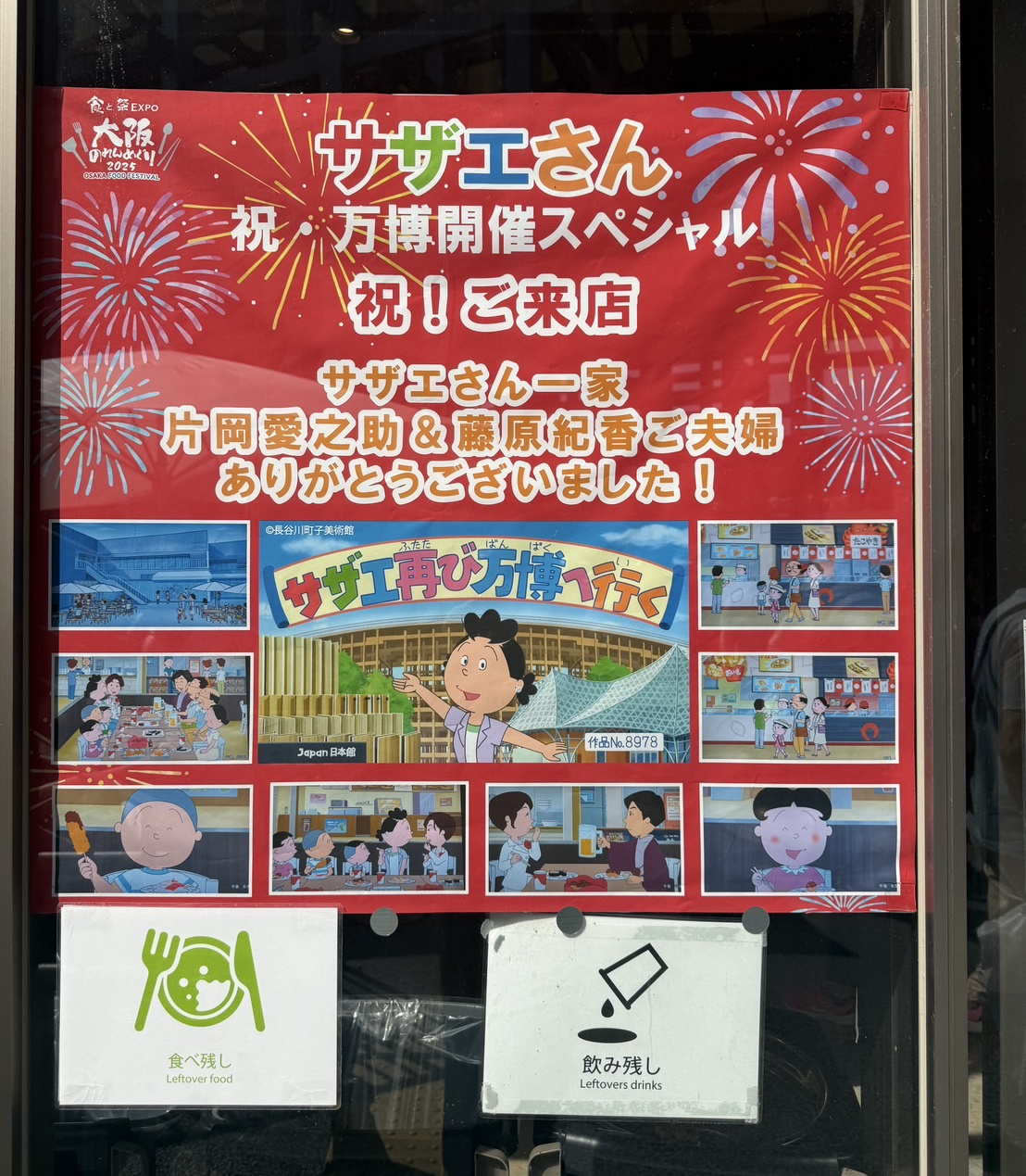 「祝!ご来店」サザエさんの万博スペシャル回に登場したフードコートがサザエさん一家と片岡愛之助・藤原紀香夫妻の来店に感謝