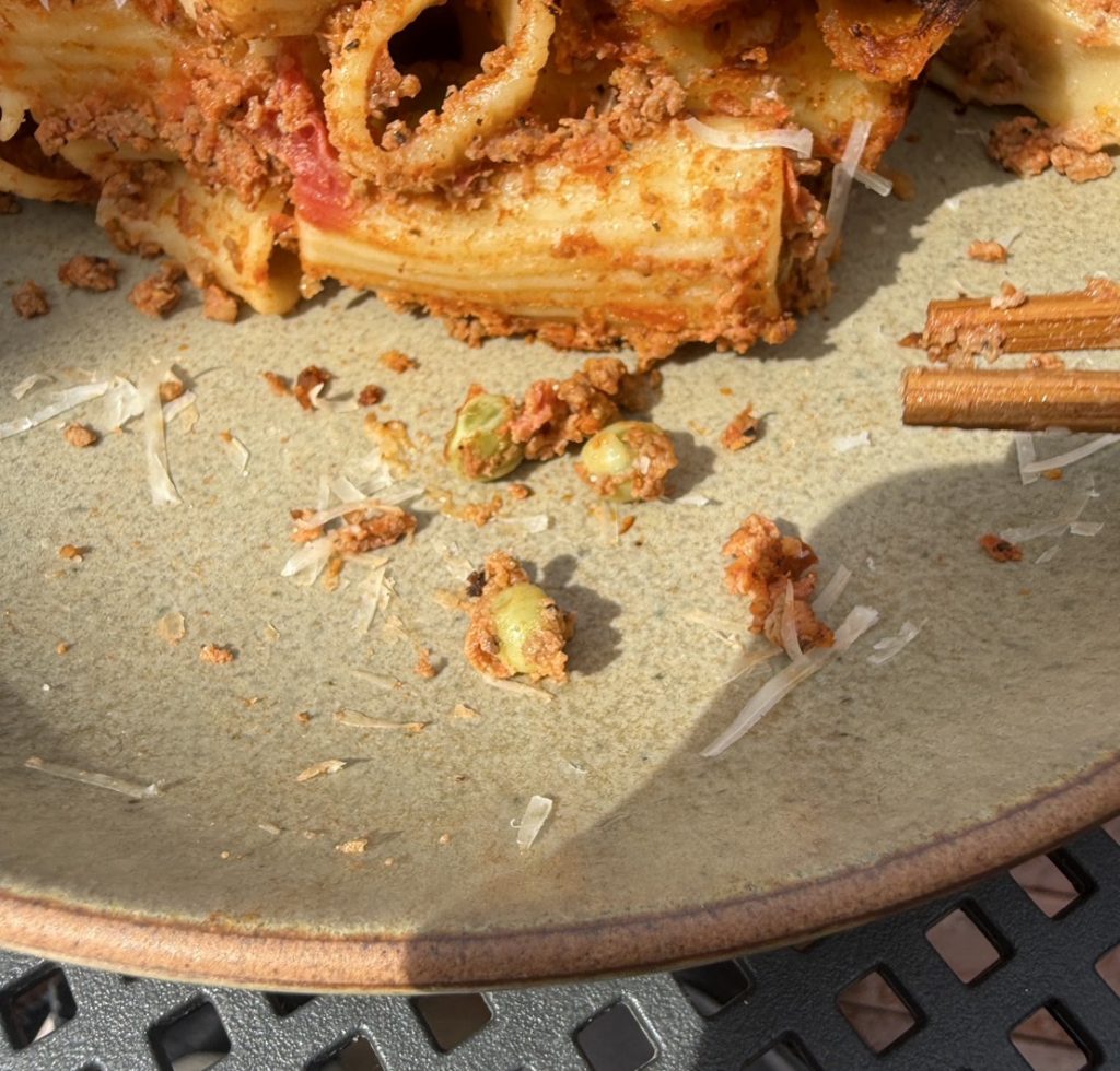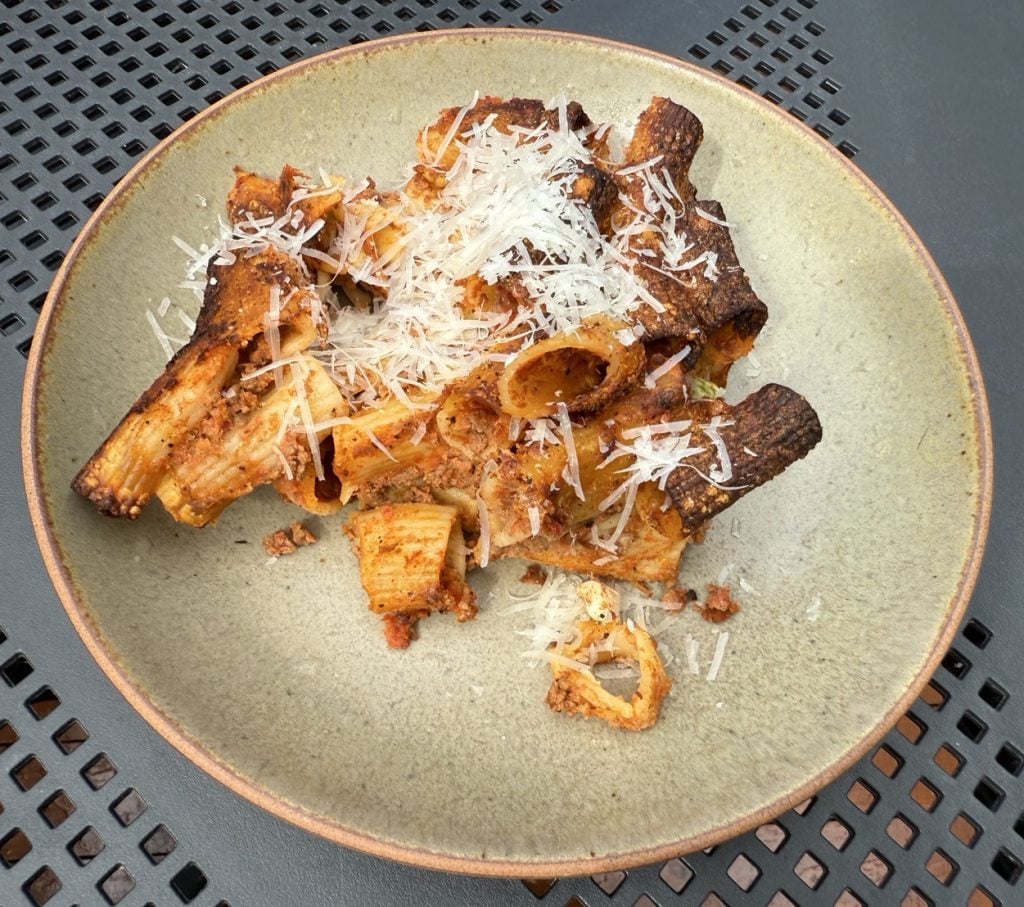 マカロニの外側と内側にまんべんなくミートソースが。以前食べたウサギのスパゲッティは、どちらかといえば薄味だっがのだが、こちらはふりかけてあるチーズとあわせて、旨味もアリ。