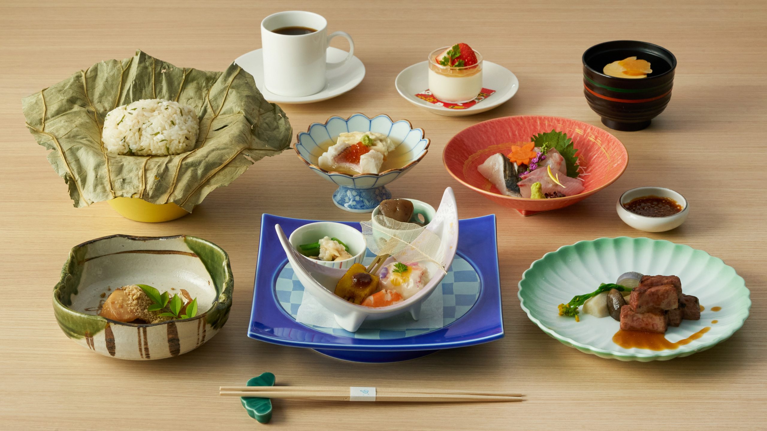 メインは希少な琥珀和牛ステーキ。さらに、京丹後市・竹野酒造の酒粕で漬け込み香ばしく焼き上げた鰆(さわら)など、羽衣天女の優雅さをイメージした美しい料理が並びます。
