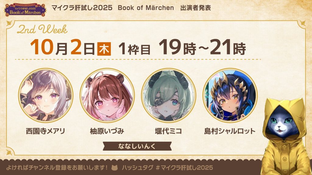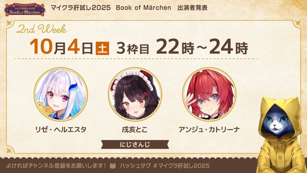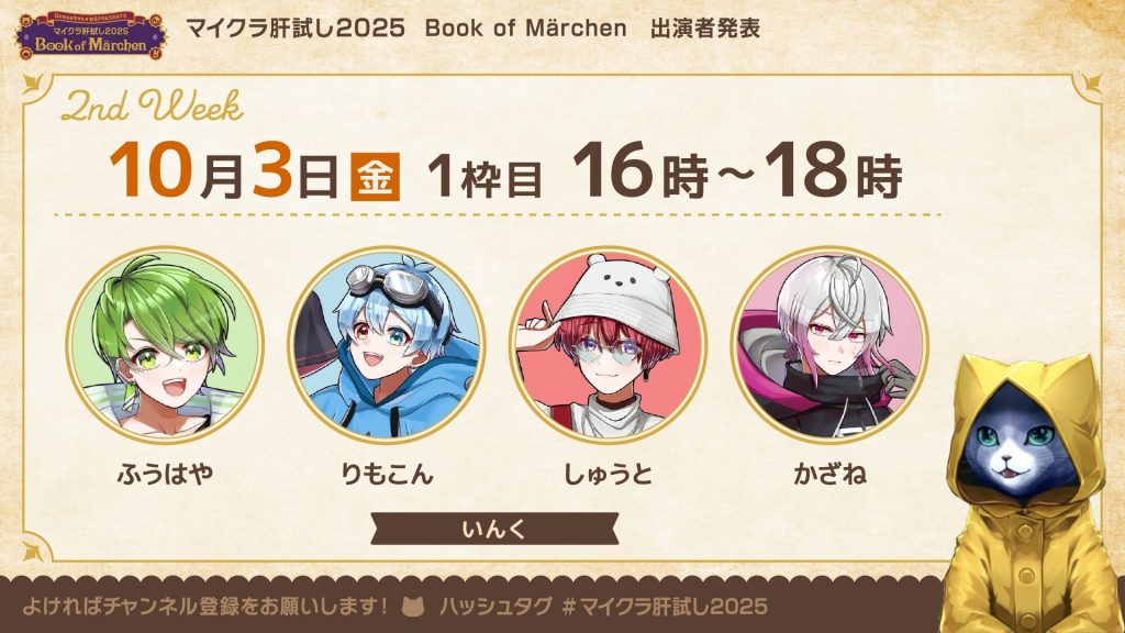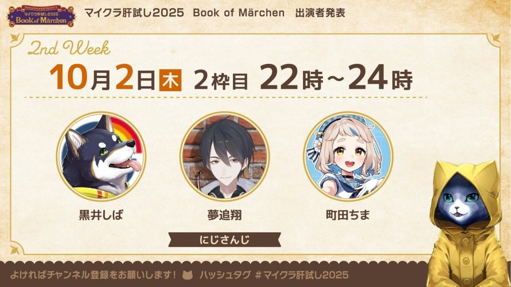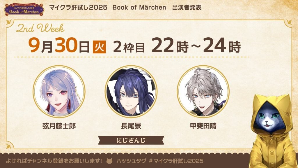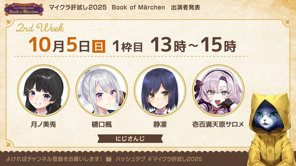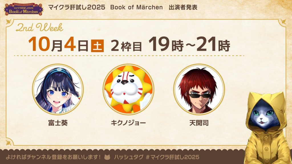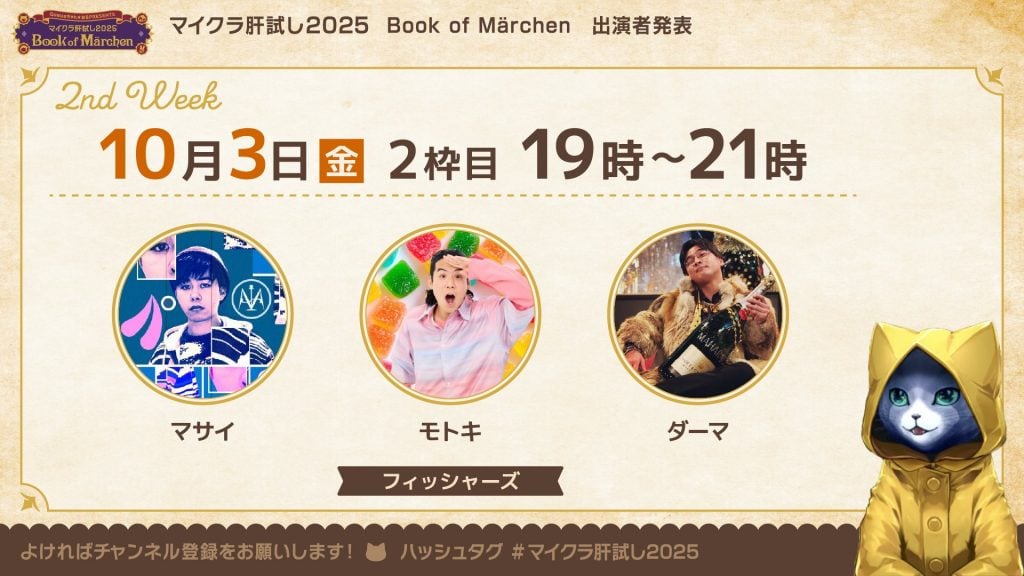 - 9/30~10/5開催! 超豪華ゲストが参戦するマイクラ肝試し2025 2nd Week「Book of Märchen」出演者タイムスケジュールをご紹介! 週刊チャンネルウォッチ9/29号