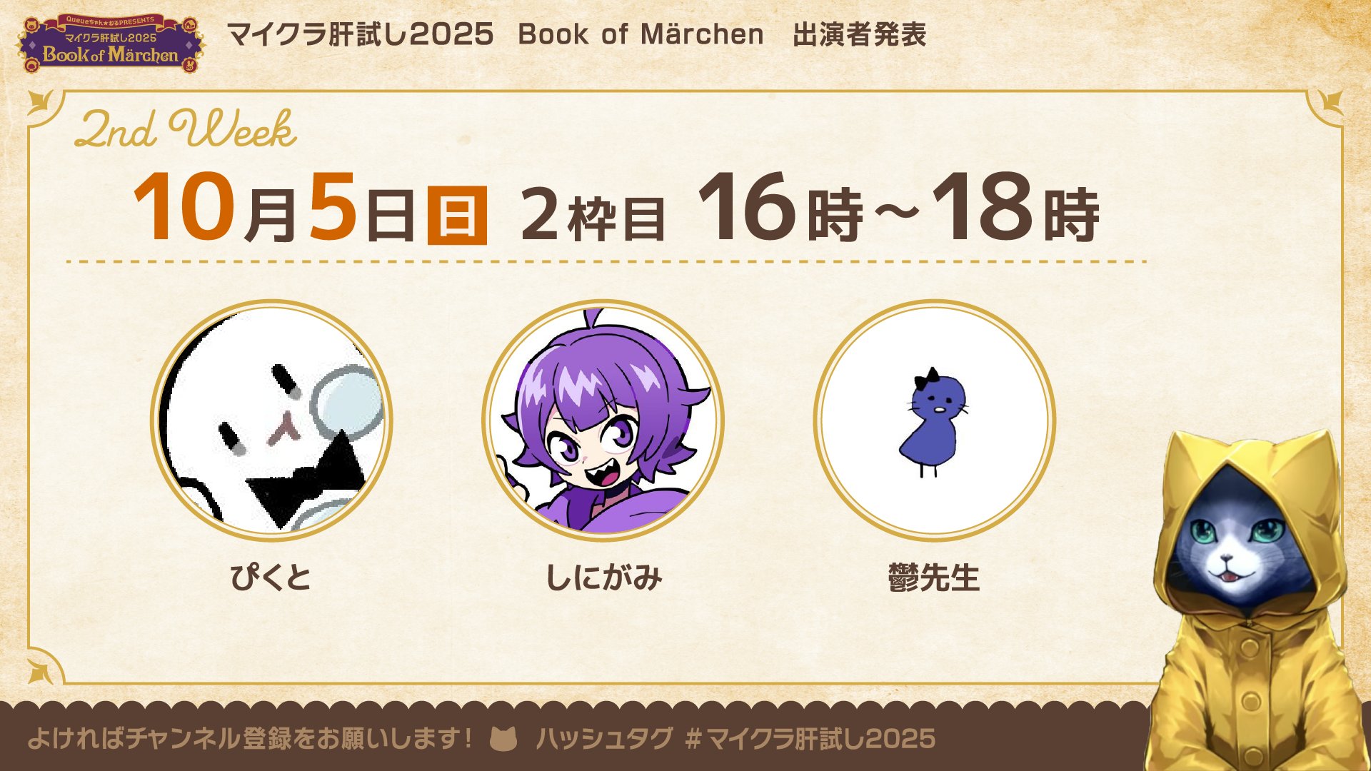 9/30~10/5開催! 超豪華ゲストが参戦するマイクラ肝試し2025 2nd Week「Book of Märchen」出演者タイムスケジュールをご紹介! 週刊チャンネルウォッチ9/29号