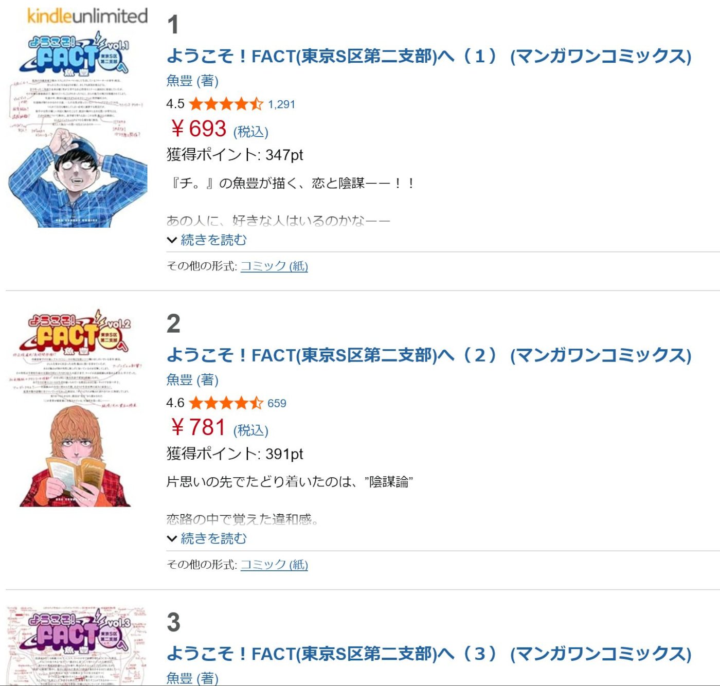 Kindle本9月マンガフェス最終日! 魚豊先生の「チ。」1~5巻や「ようこそ!FACTへ」「ひゃくえむ。」全巻が50%ポイント還元