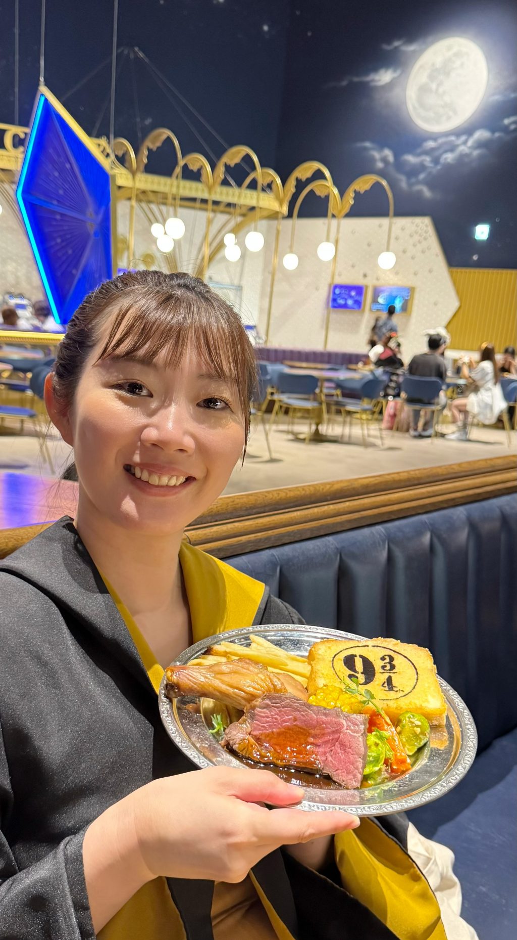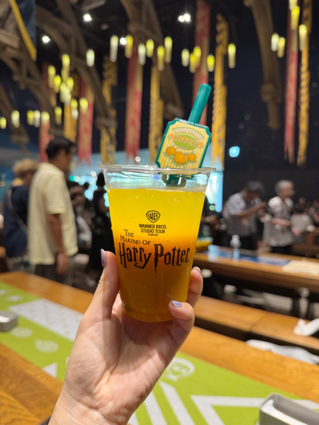 スタジオツアー東京では、ホグワーツの大広間を思わせるフードホールで、この日だけの限定スペシャルメニュー「バック・トゥ・ホグワーツプレート」が提供され、物語に登場する魔法界の人気ドリンクパンプキンジュースで乾杯!映画の世界に浸りながら食事を楽しみました。