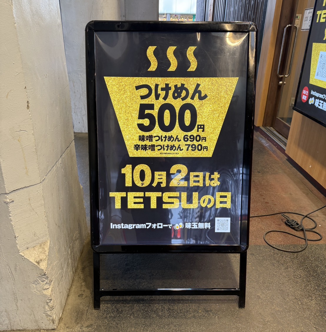 10月2日は「TETSUの日」 つけめん990円が500円!インスタフォローで味玉無料サービス