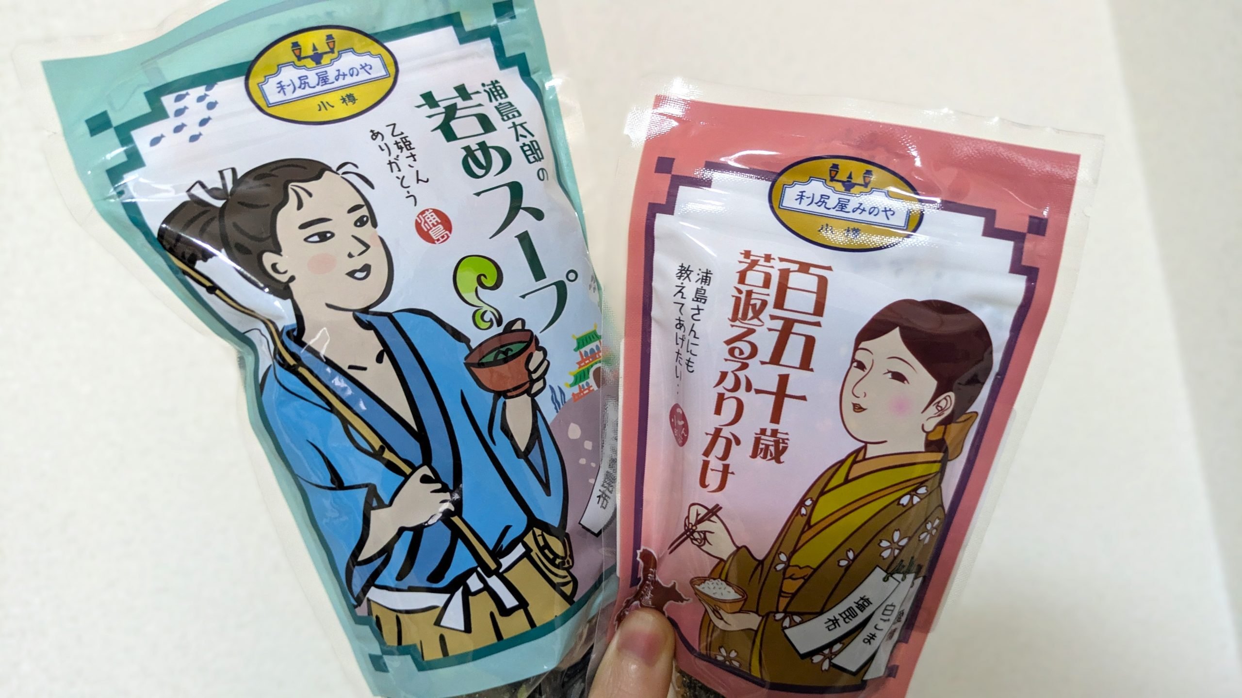アンチエイジング愛好家の筆者は、「150歳若返るふりかけ」や「浦島太郎の若めスープ」をゲット。