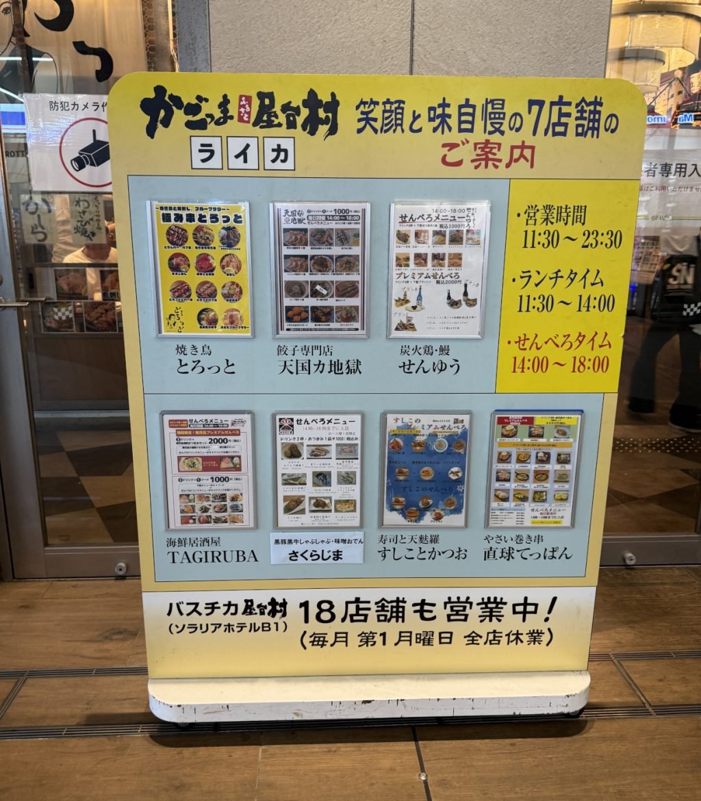 鹿児島中央駅のそばにある、「かごっまふるさと屋台村」。