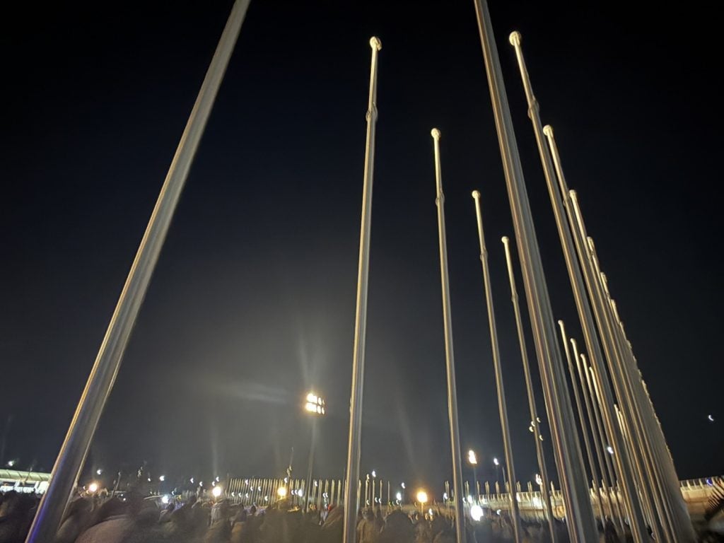 その後、いったん所用により夢洲を離れて再入場。16時すぎ、フラッグパレードが行われるということで大屋根リング下は身動きがとれないほどのカオス状態となる。