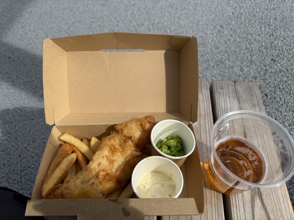 ちょっと先のイギリス館でテイクアウトのフィッシュアンドチップス1950円を購入してまったりモードに。