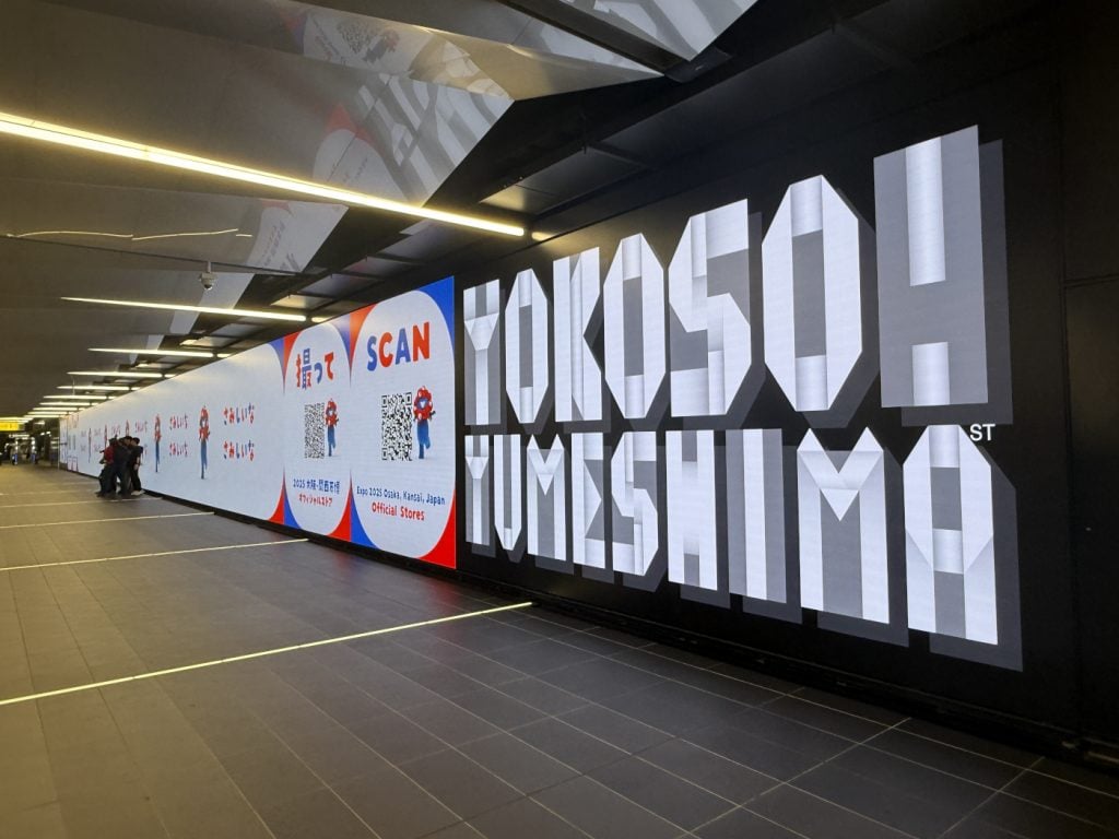 壁面のLEDディスプレイには、まだミャクミャクが!なんとなく嬉しい。