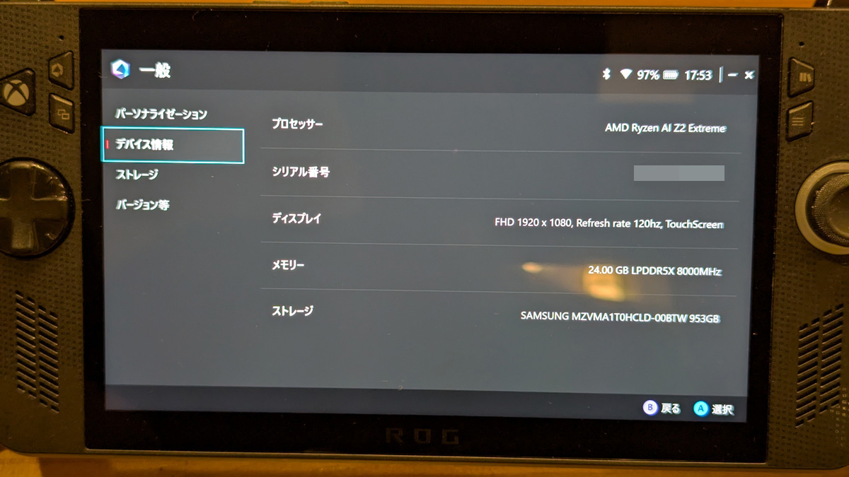 ディスプレイは共通して、タッチパネル対応で1920×1080解像度の7.0型ワイドTFTカラー液晶を搭載。リフレッシュレートは120Hzで、最大輝度は500nits。ROG Xbox Allyは初期設定時にフルHD(720p)画質に設定されていますが、1080pに設定することで高画質なグラフィックスを楽しめます。