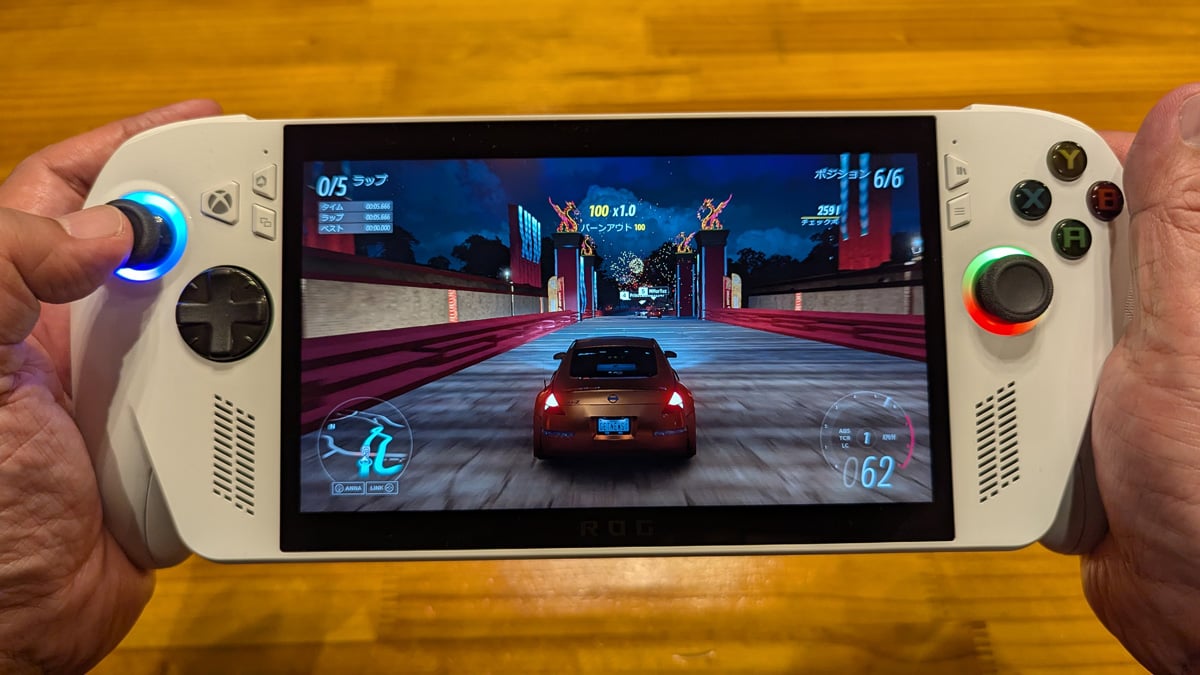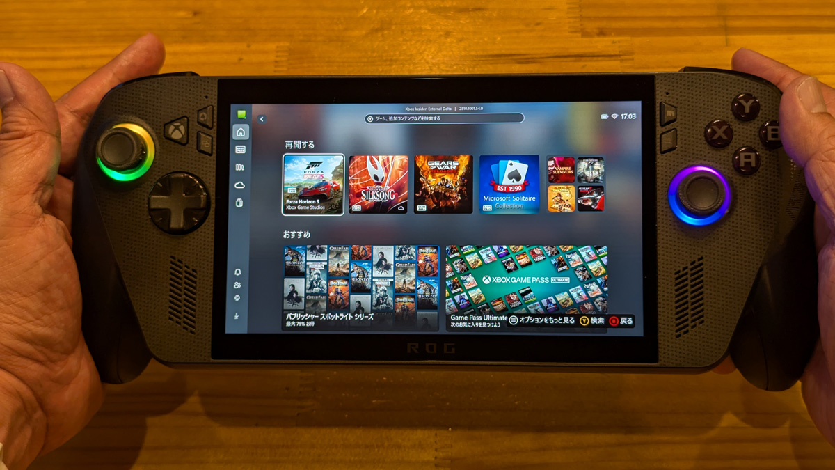 「Forza Horizon 5」「Gears of War: Reloaded」といった大型タイトルを本体にインストールしてプレイしてみました。2モデルともゲームは軽快に動作し、快適にプレイできます。グリップを握ってのコントローラー操作は使い慣れたXboxゲームコントローラーと同様の操作感で、個人的には携帯ゲーム機の中でダントツの使い心地です。