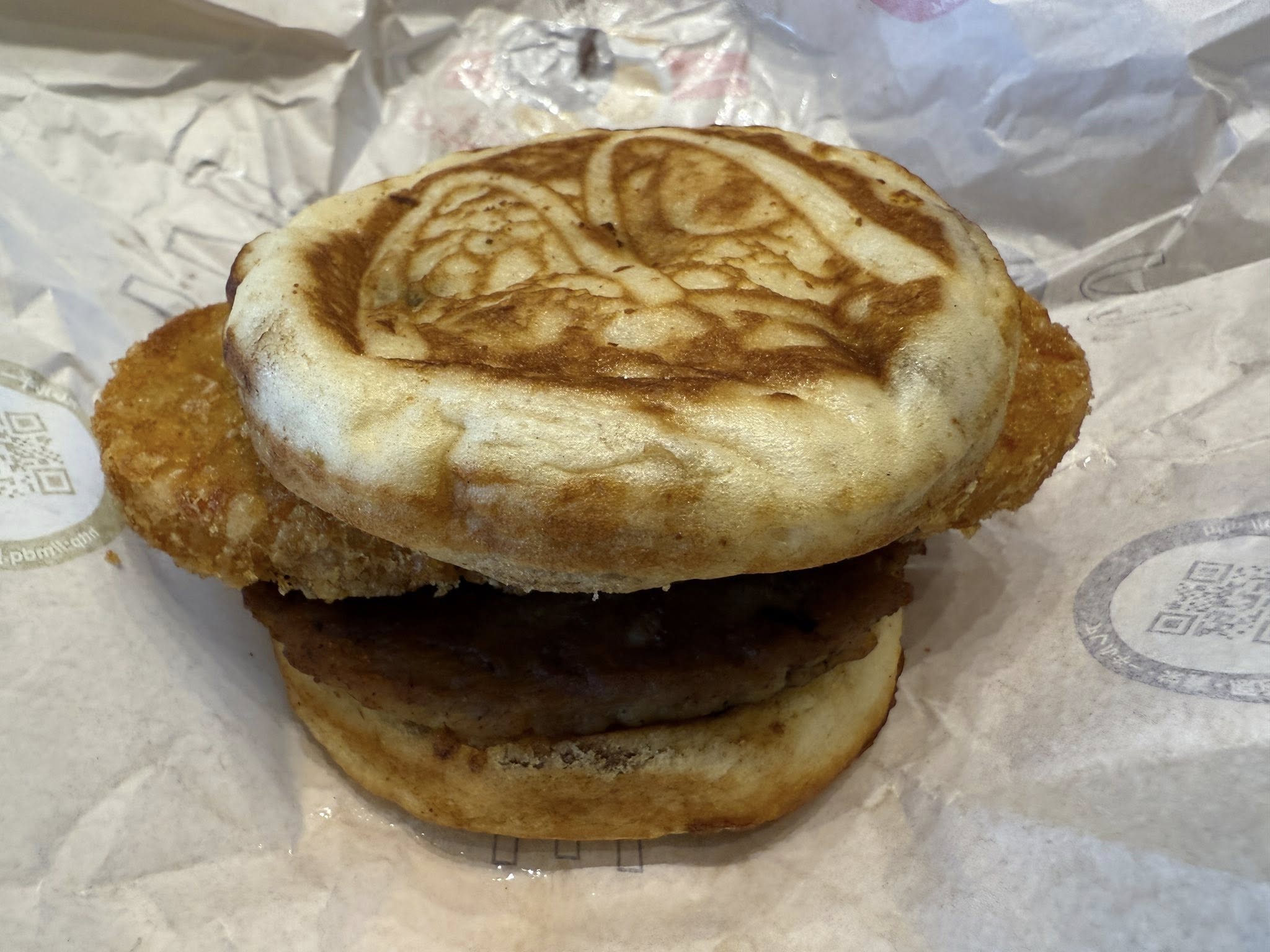 マックグリドルにハッシュポテトをはさんで「ザクッ ザクッッ」 SNSでバズっていた食べ方を試してみた