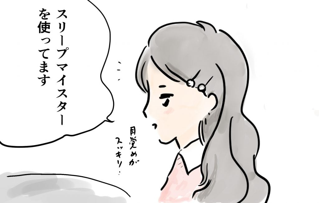 ちかさん:「『スリープマイスター』というアプリがあって、有料版もあるのですが、無料版を使っています。起きたい時間を設定して、アラームを設定して枕元に置いておくとレム睡眠のタイミングでスッキリ起こしてくれます。」
