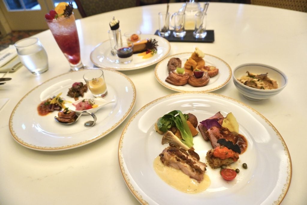 筆者はディナーメニューをいただきましたが、「鴨むね肉のロースト イチジクチャツネ添え」や、「ローストボークシェリーウィネガーソース」など、お馴染みのお肉メニューも秋らしい味わいに。きのこや鰹など秋の味覚を存分に楽しめることも嬉しいですね。