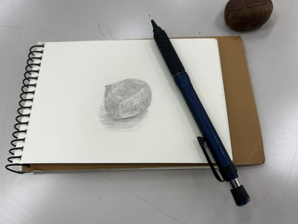 さてプロ画家に高級シャーペン「テクトツゥーウェイRO」でサラリと栗のデッサンを描いてもらいました。