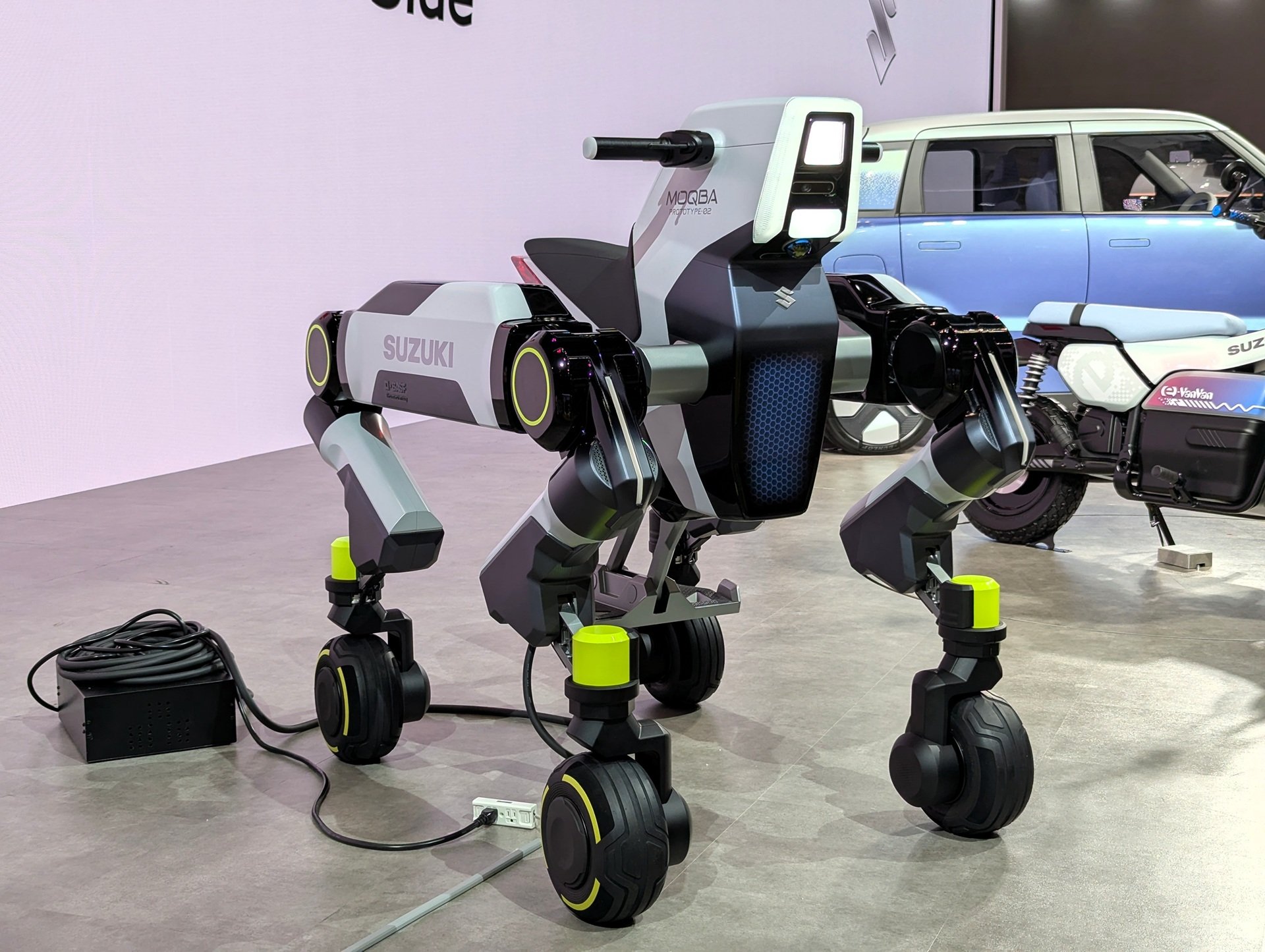 スズキのブースではその他、BEVファンバイクのコンセプトモデル「e-VanVan」や、2025年7月に発表したネオレトロのストリートバイク「GSX-8T」「GSX-8TT」、次世代四脚モビリティ「MOQBA 2」などを展示しています。