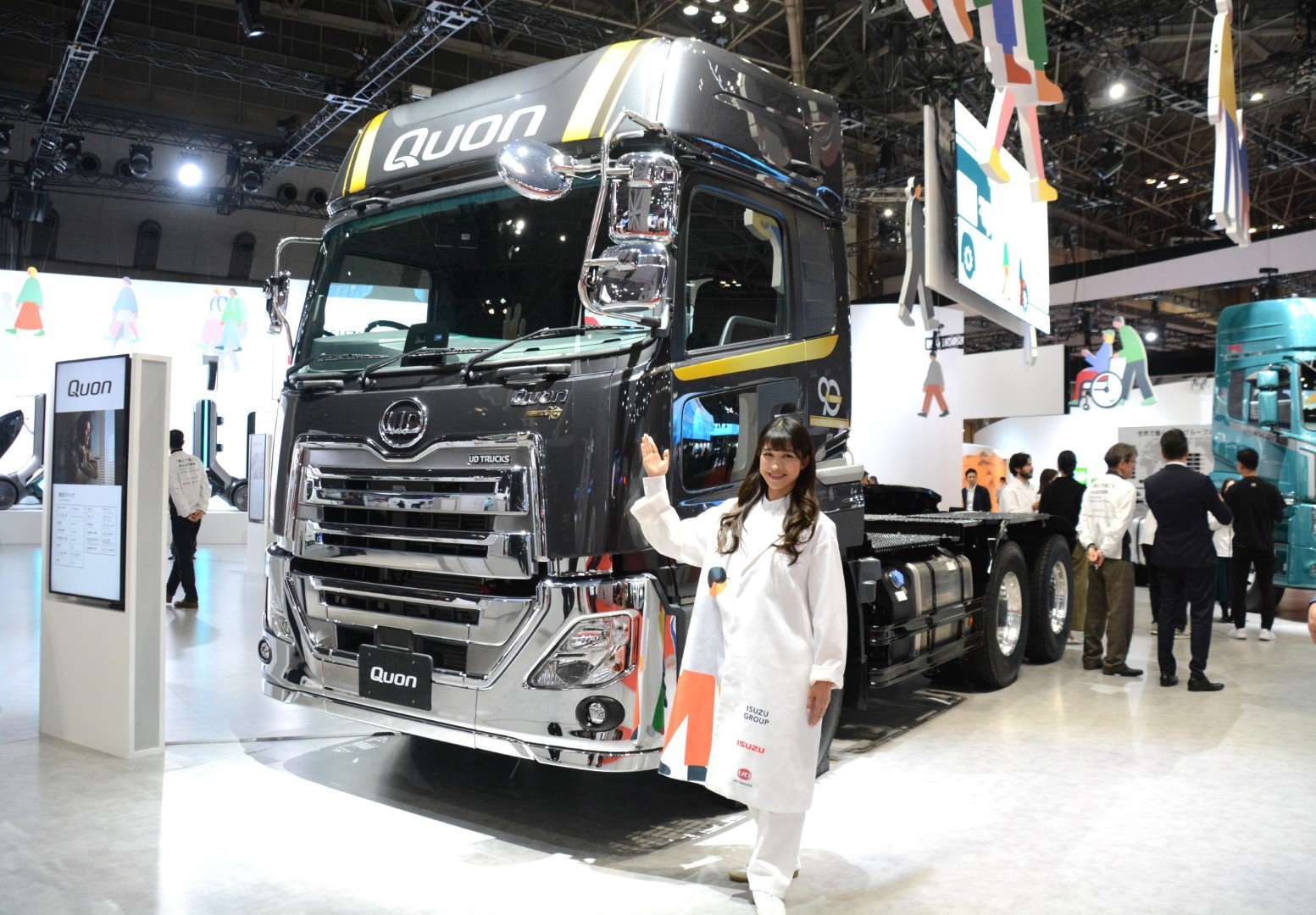 そのほか、UDトラックス創立90周年を記念した特別ラッピングの大型トラック「Quon GW 6×4」。万博でも活躍したバッテリーEVバス「エルガEV」に自動運転機能を搭載した開発中のモデルなどを見ることができる。