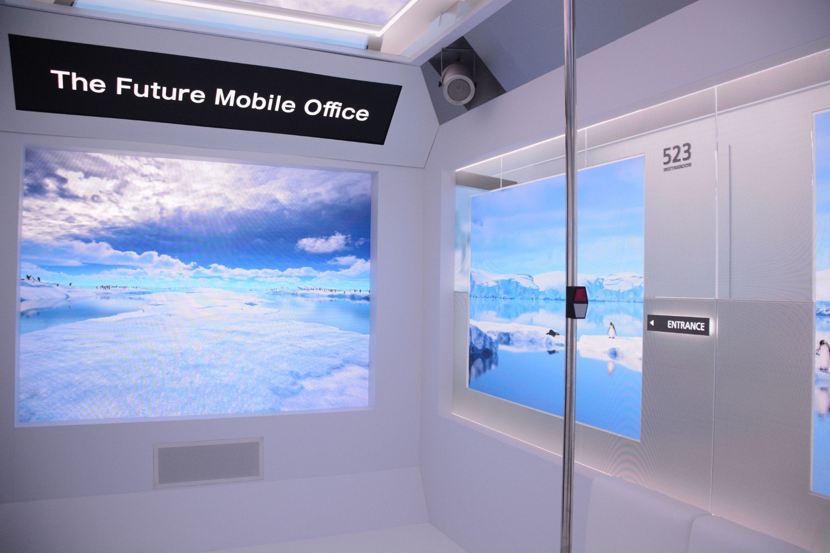 “動かなかった場所”を自由に運ぶ「みんなの未来バス」は、車内のほぼ全面に配したLEDパネルを利用した映像により「うごく美術館」「うごくオフィス」「うごく旅館」に没入できる。