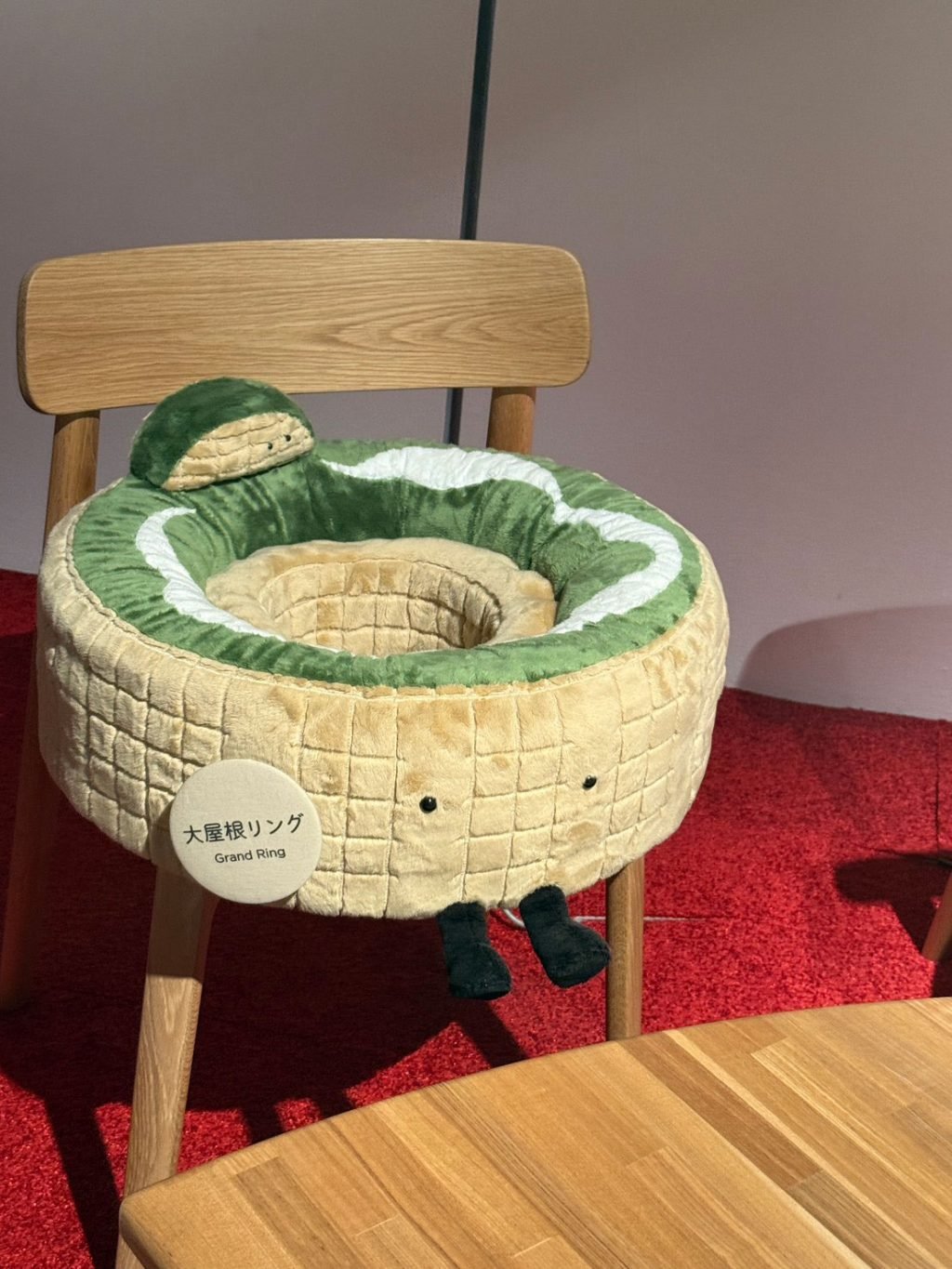 また、藤本さんのこれまでの作品のぬいぐるみがそれぞれ会話するという可愛らしいコーナーもあり、その中には大屋根リングのぬいぐるみも。
