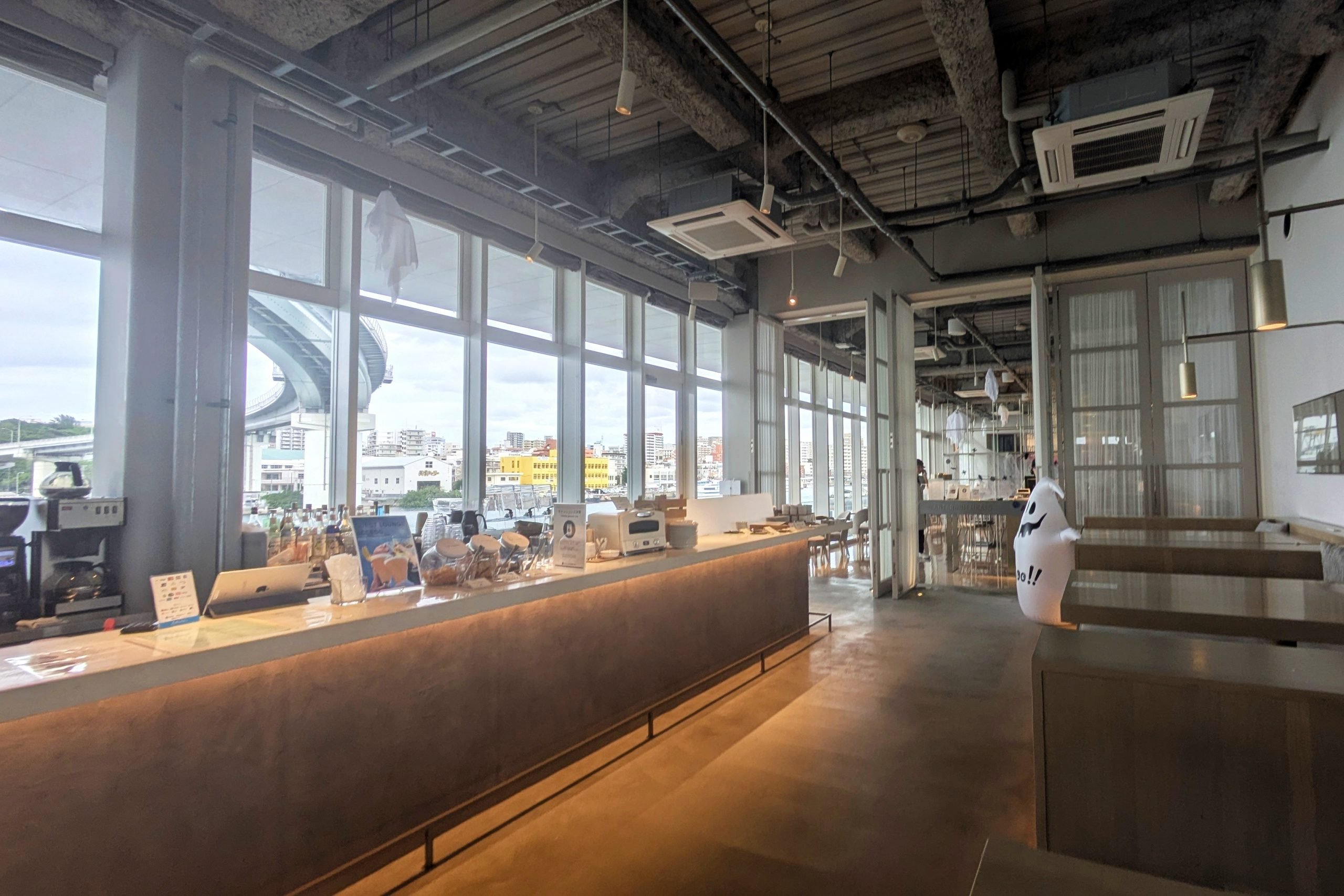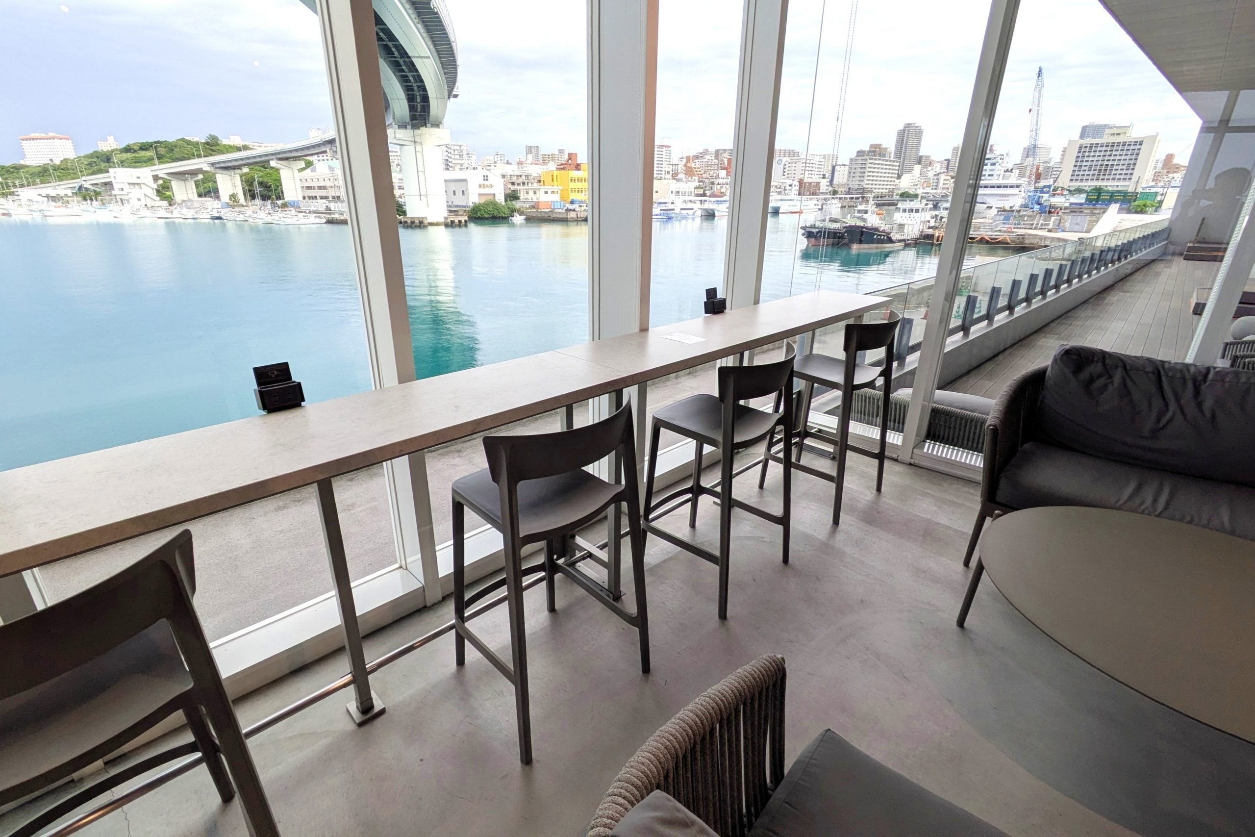 2階に上がると、景色は一変。ガラス窓の向こうに広がる爽やかな海の眺めは圧巻です。