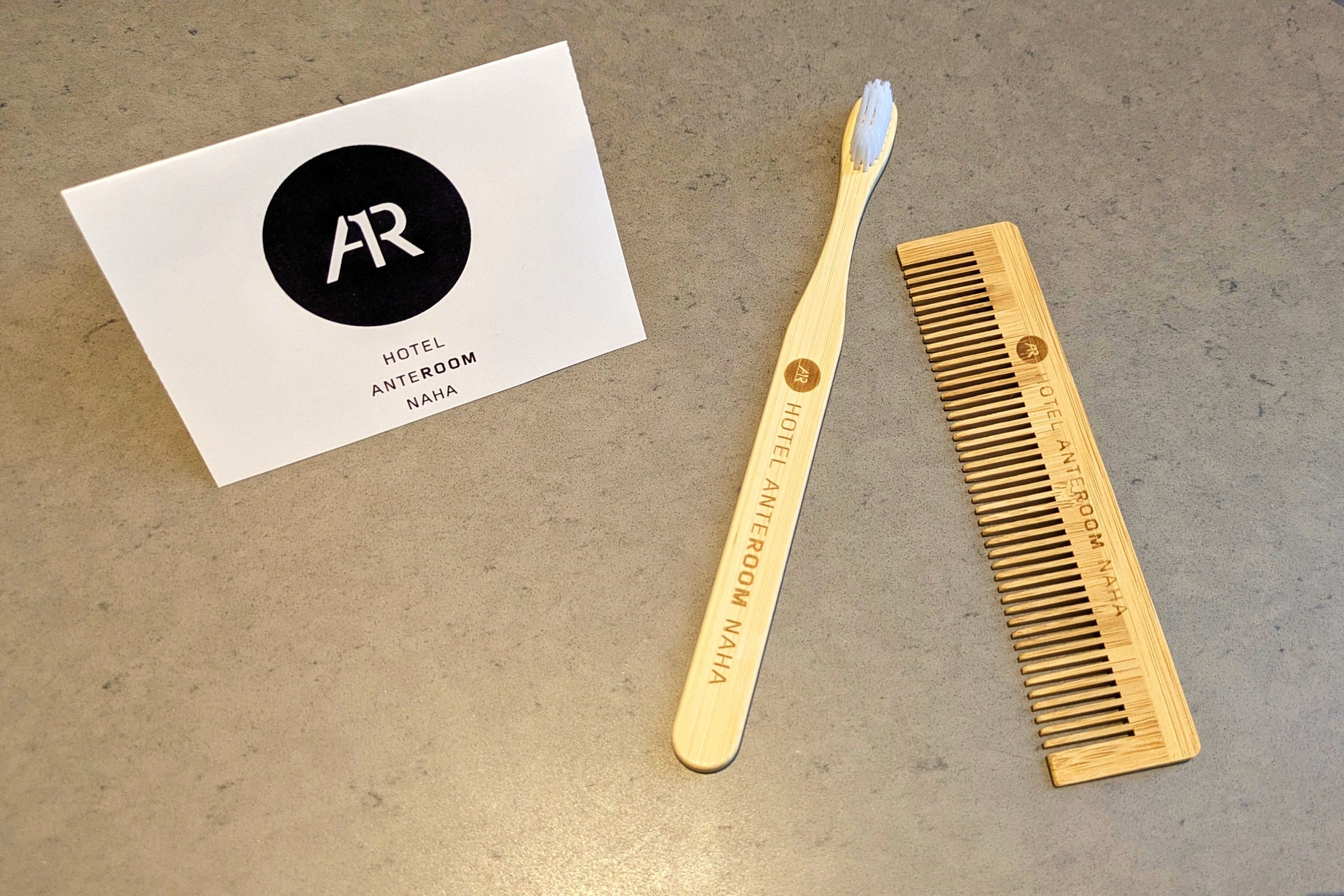 アメニティとして用意される歯ブラシやコームは、こだわりの竹製。