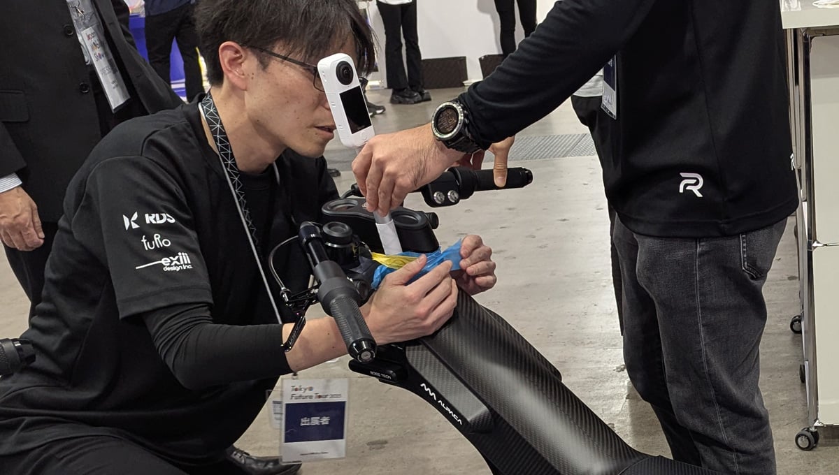 アクションカメラらしく、車載動画の撮影にも挑戦。「Tokyo Future Tour 2035」エリアにroidztechが出展していた3輪プラットフォーム型モビリティ「Raptor」に試乗する際、展示スタッフさんにご協力いただき、ハンドルに自撮り棒をテープで固定した状態で走らせてもらいました。撮影した動画は、デスクトップアプリ「Insta360 Studio」で編集。タイムラインにキーフレームを挿入して、マウスをドラッグしながら視点やズームを決定し、自由に視点を移動する動画が制作できます。