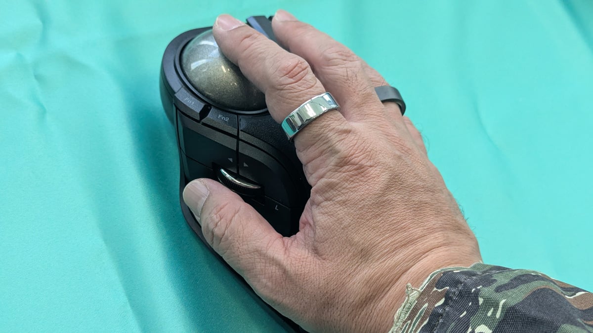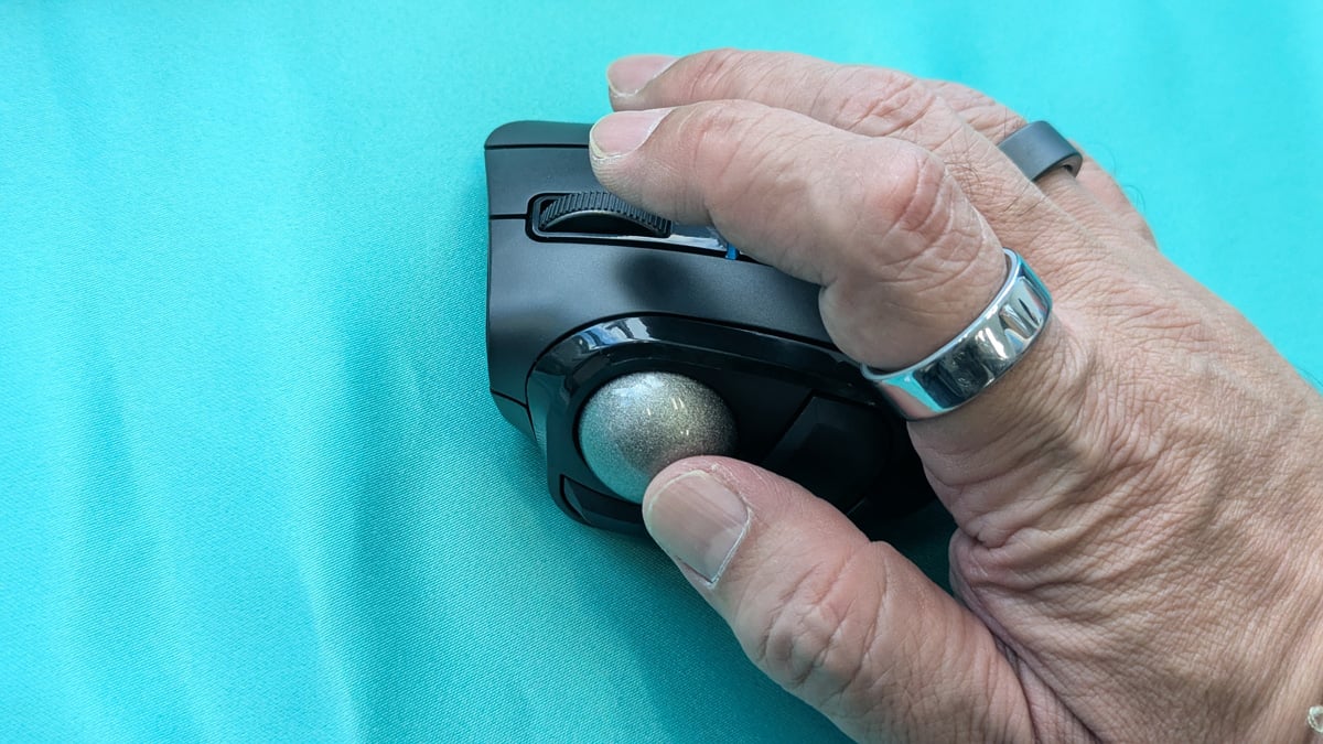 HUGE PLUSは、人差し指で操作する直径52mmの大玉を採用し、手首の負担を軽減する低反発素材のパームレストを搭載する大型トラックボールマウスの新モデル。