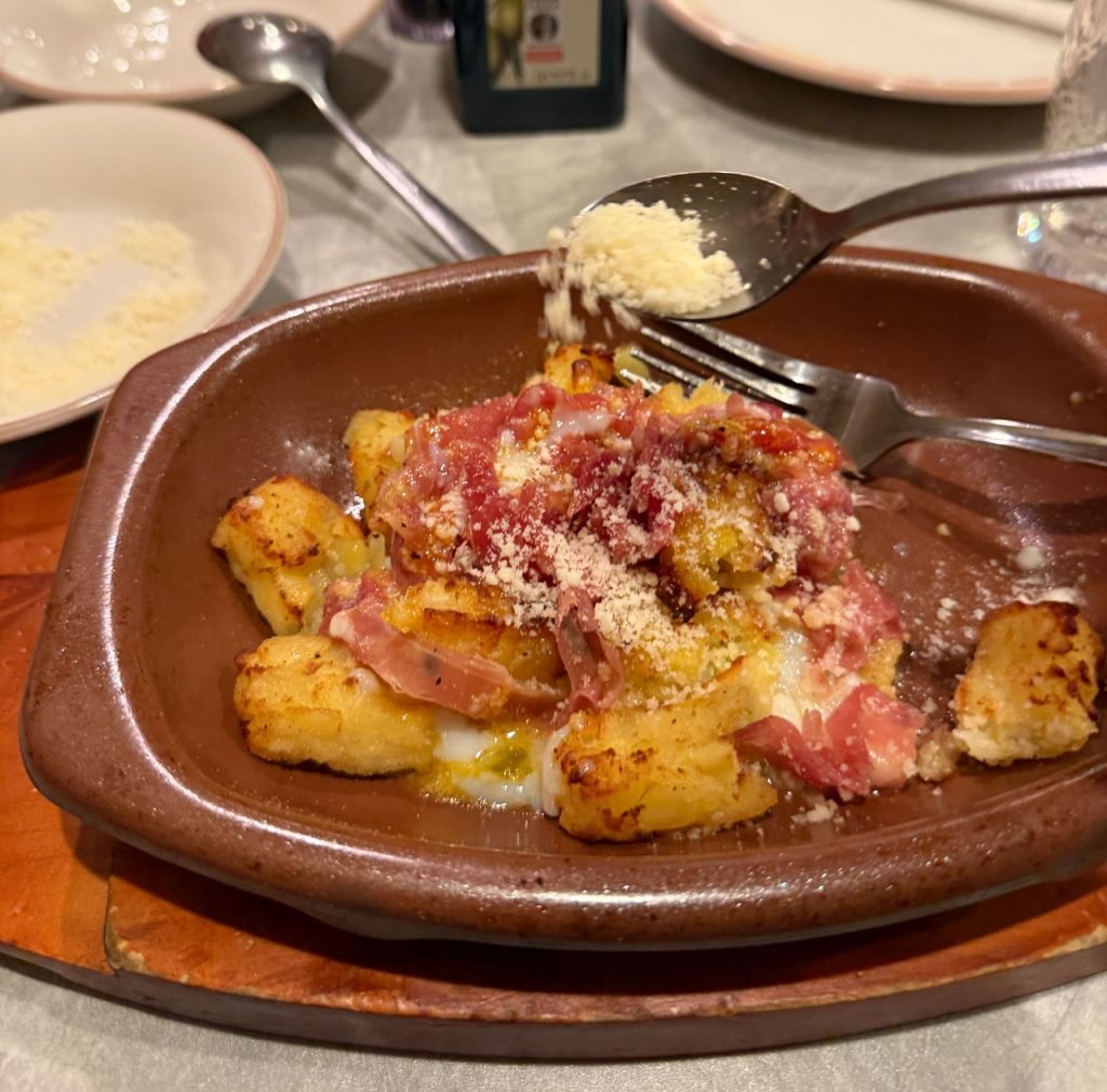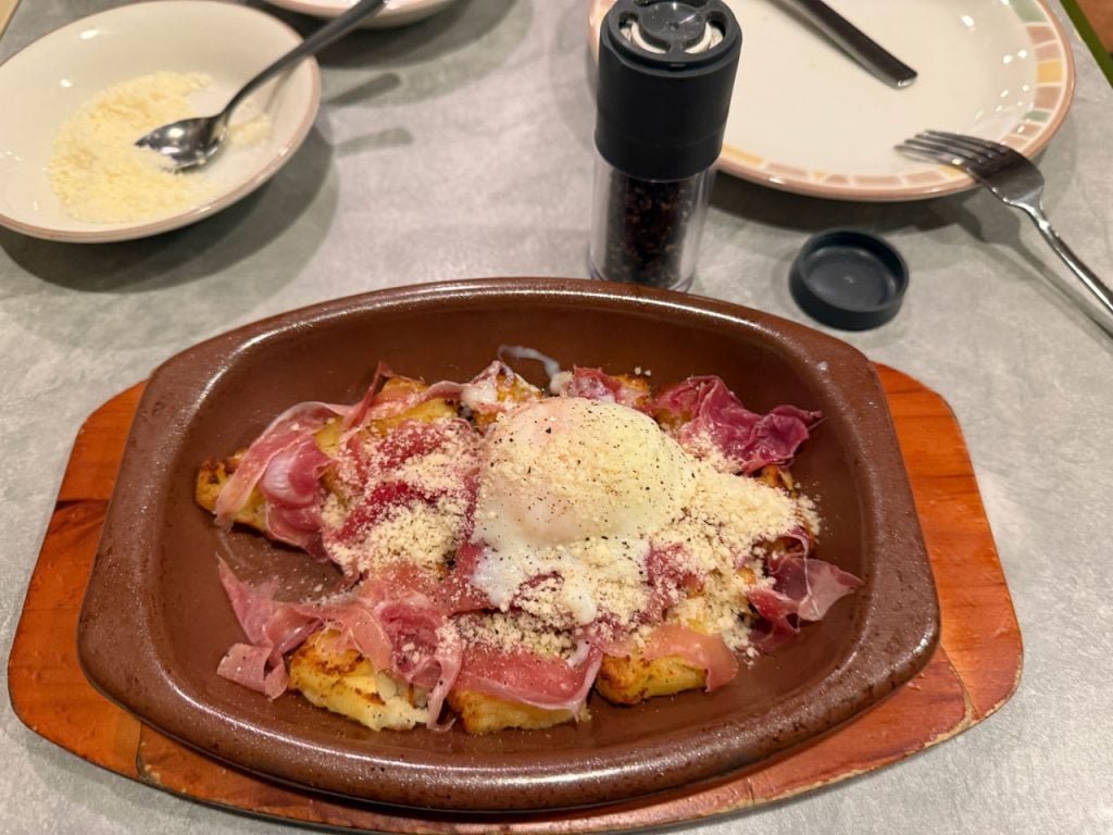 ホクホクポテトとねっとりとした生ハム、まろやかな卵黄が絡む。粉チーズをかけることによって、絶妙にワインにピッタリな代物になった感じ。