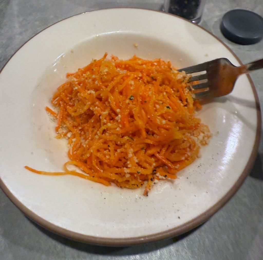 サイゼリヤのキャロットラペ200円に、熟成粉チーズ100円をたっぷり混ぜて、ブラックペッパーをガリガリガリ。ワイン泥棒の完成。 pic.twitter.com/CxYcxnhl1A
