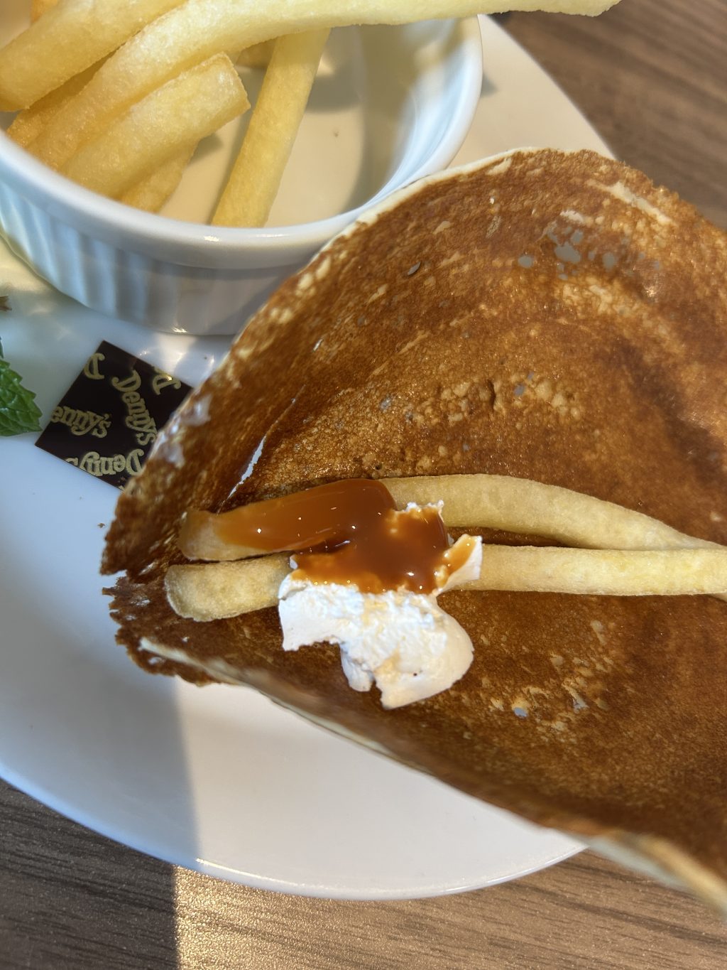 お食事クレープにするもよし、ポテトを巻いて、クリームを追加して甘じょっぱいを追求するもよし。