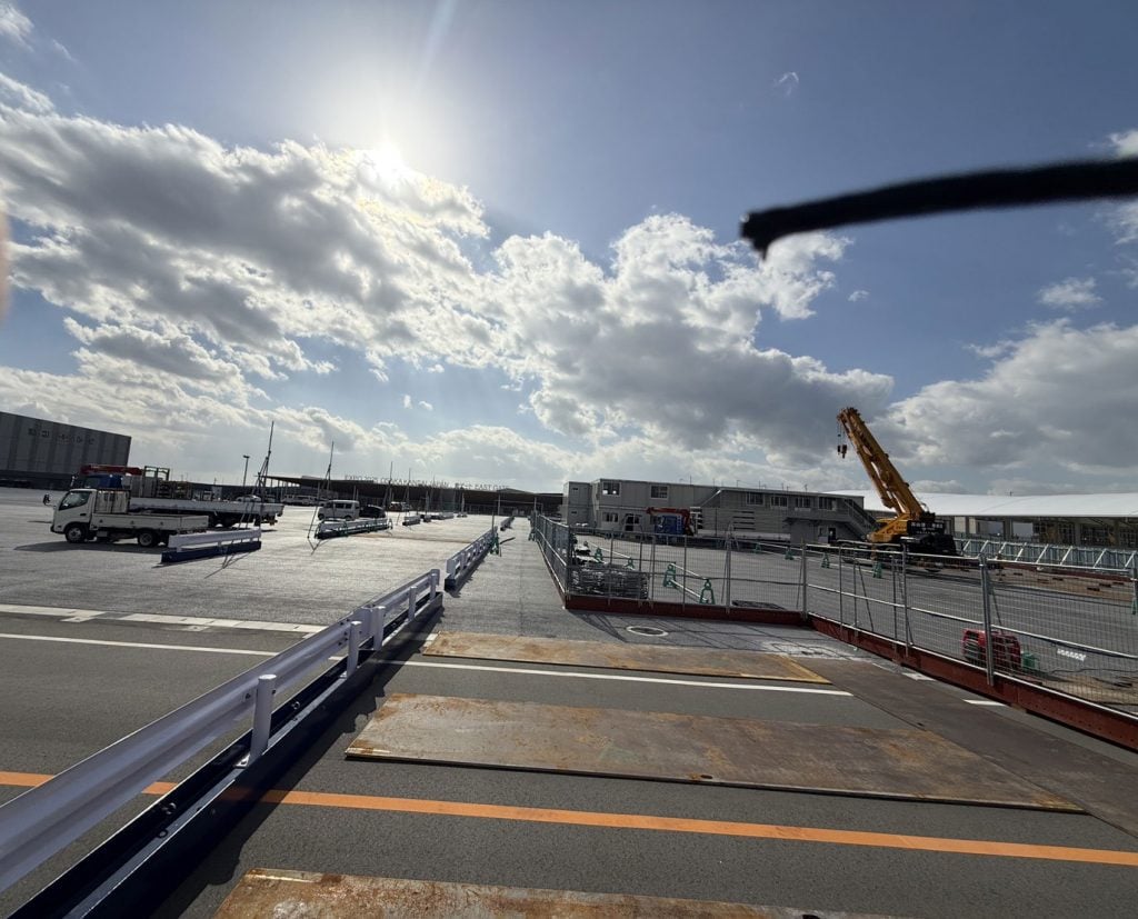 東ゲート前は封鎖され、工事が着々と進んでいっている。はるか遠くに見える、思い出の大屋根リング……。