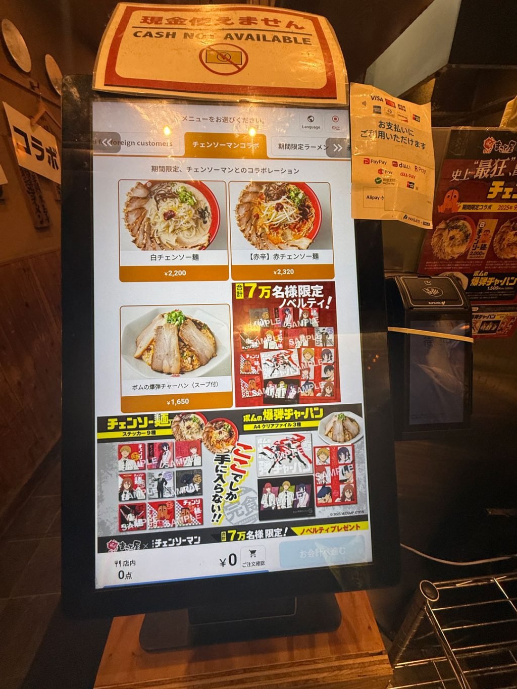 普通の牛白湯ラーメンが780円(858円)であることを考えると、2200円というお値段は果たして。一応、全9種のオリジナルステッカーがランダムでもらえるが。