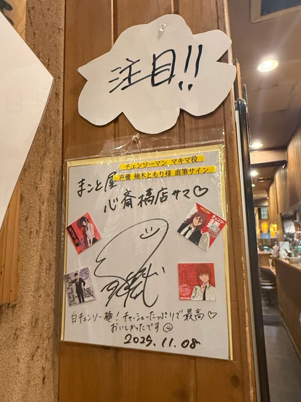 お店にはマキマさんの中の人であるところの楠木ともりさんのサインが飾ってあり、眼福。