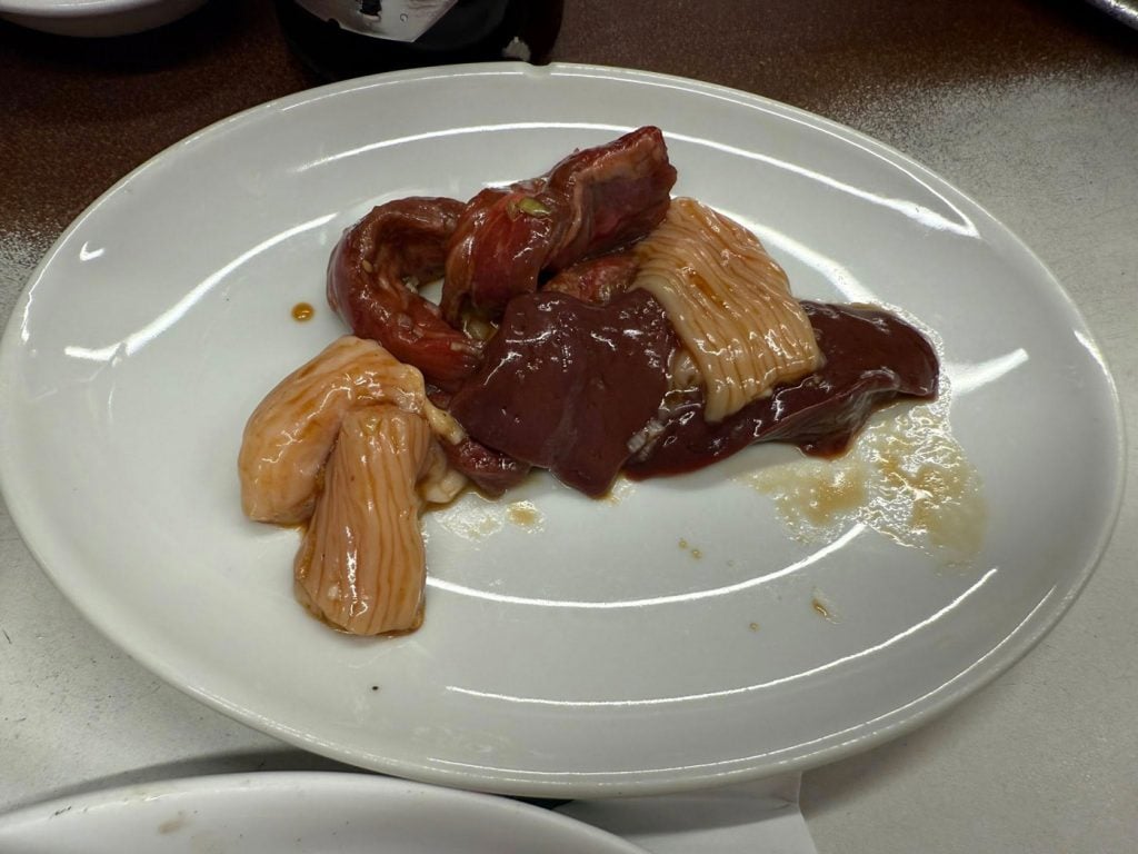 その他、ホルモンの盛り合わせ、上ハラミ、玉子スープなどもいただきます。