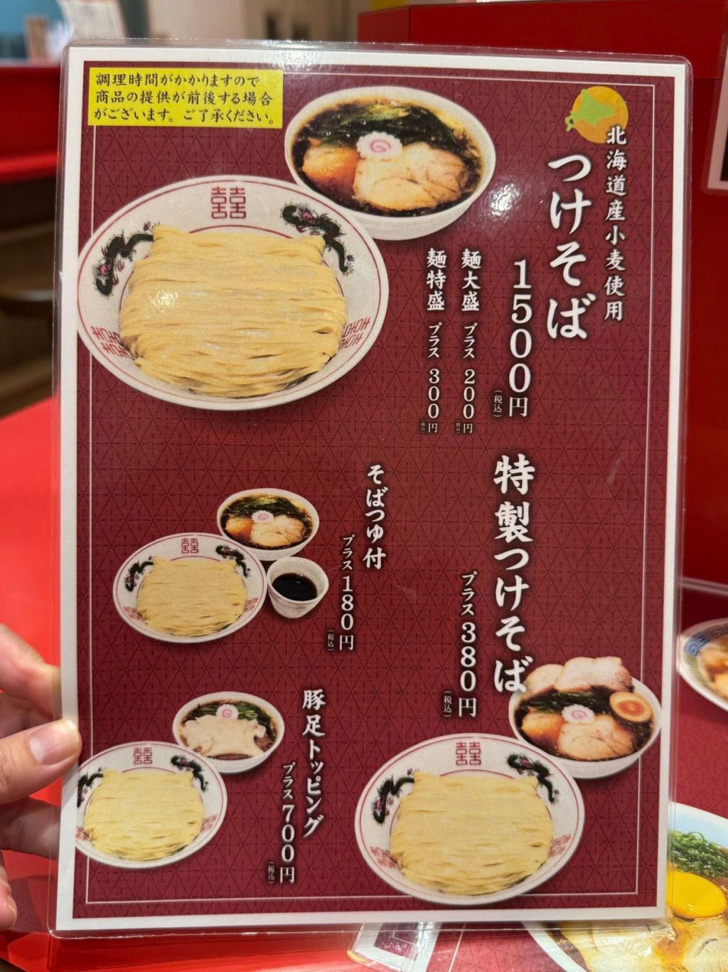 お値段は1500円。麺大盛がプラス200円、特盛がプラス300円。