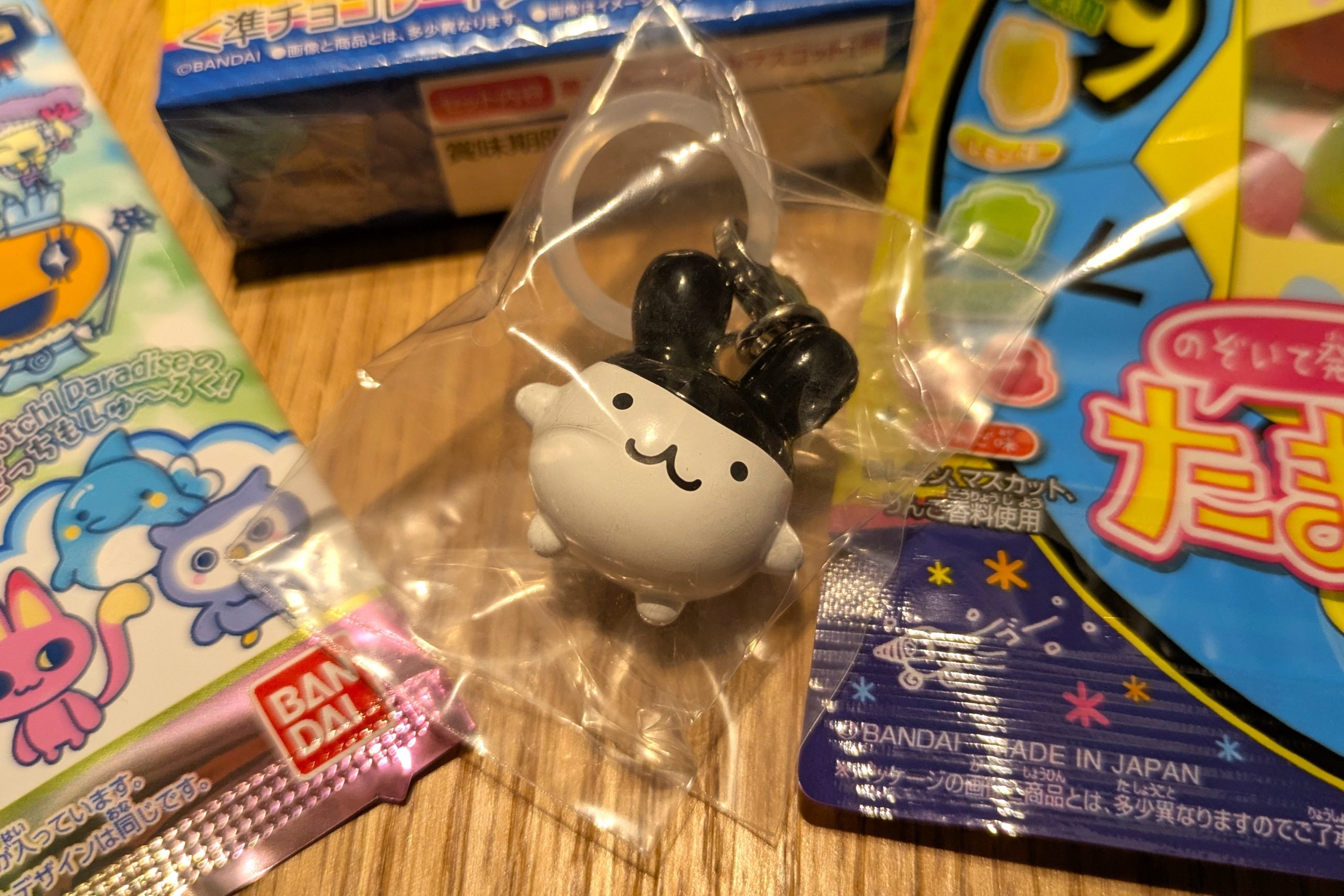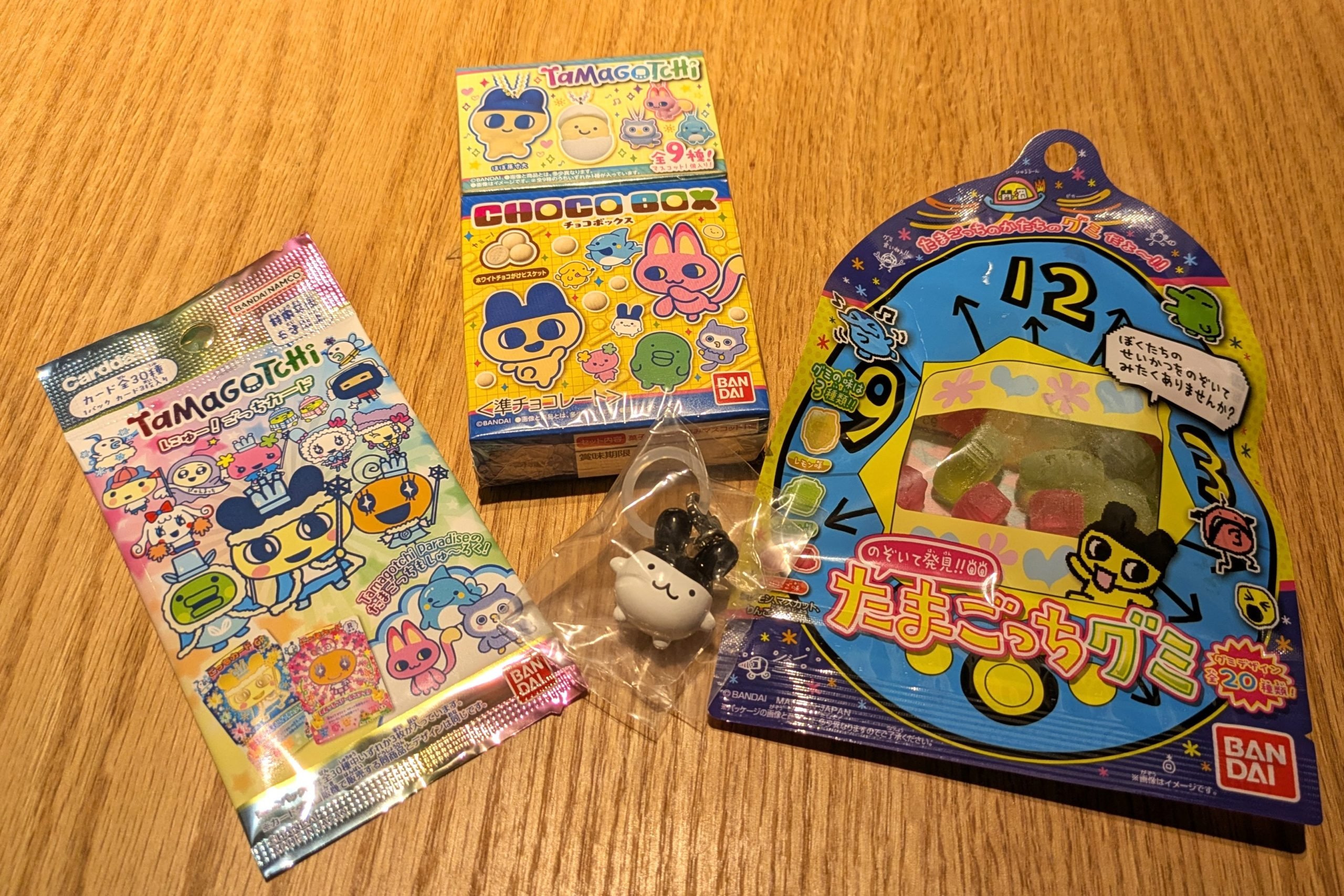左から「たまごっち にゅー!ごっちカード(税込220円)」、「たまごっち チョコボックス(税込385円)」、「のぞいて発見!! たまごっちグミ(税込194円)」
