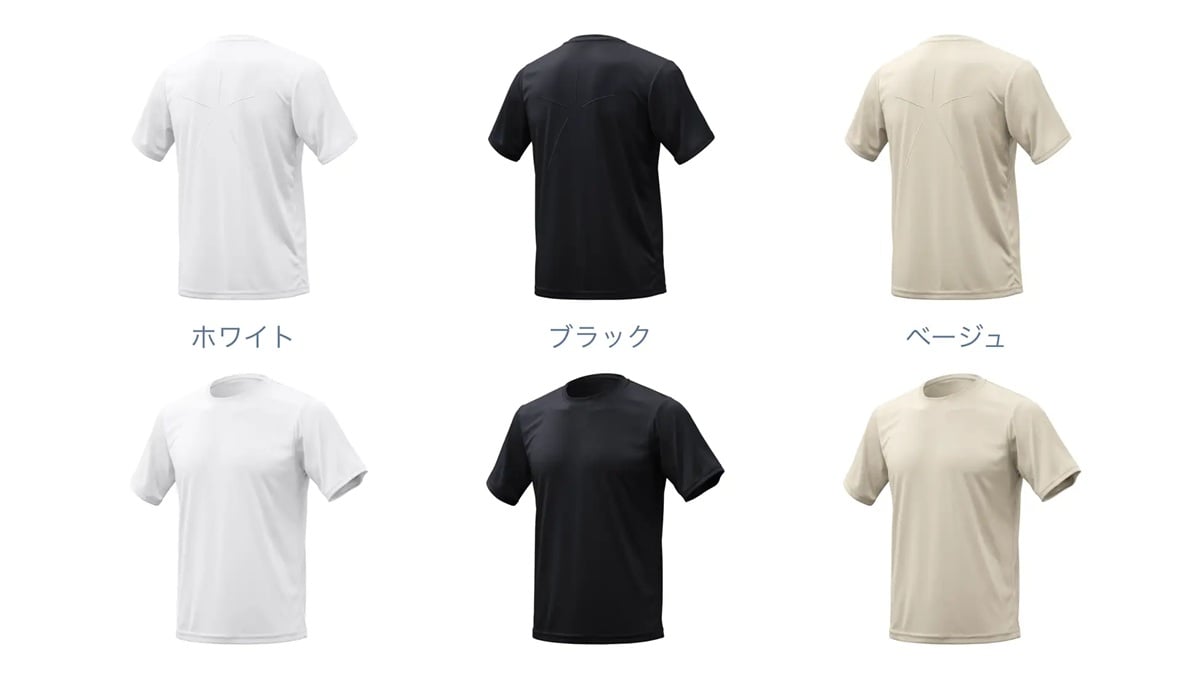 これまで綿Tシャツ、ドライTシャツとして販売してきたモデルに加えて、仕事や外出時、在宅時にいつでも着られるインナータイプのモデルを新たに開発、発売しました。各モデルはホワイト、ブラック、ベージュの3色にサイズは4種をラインアップ。価格は9900円(税込)です。