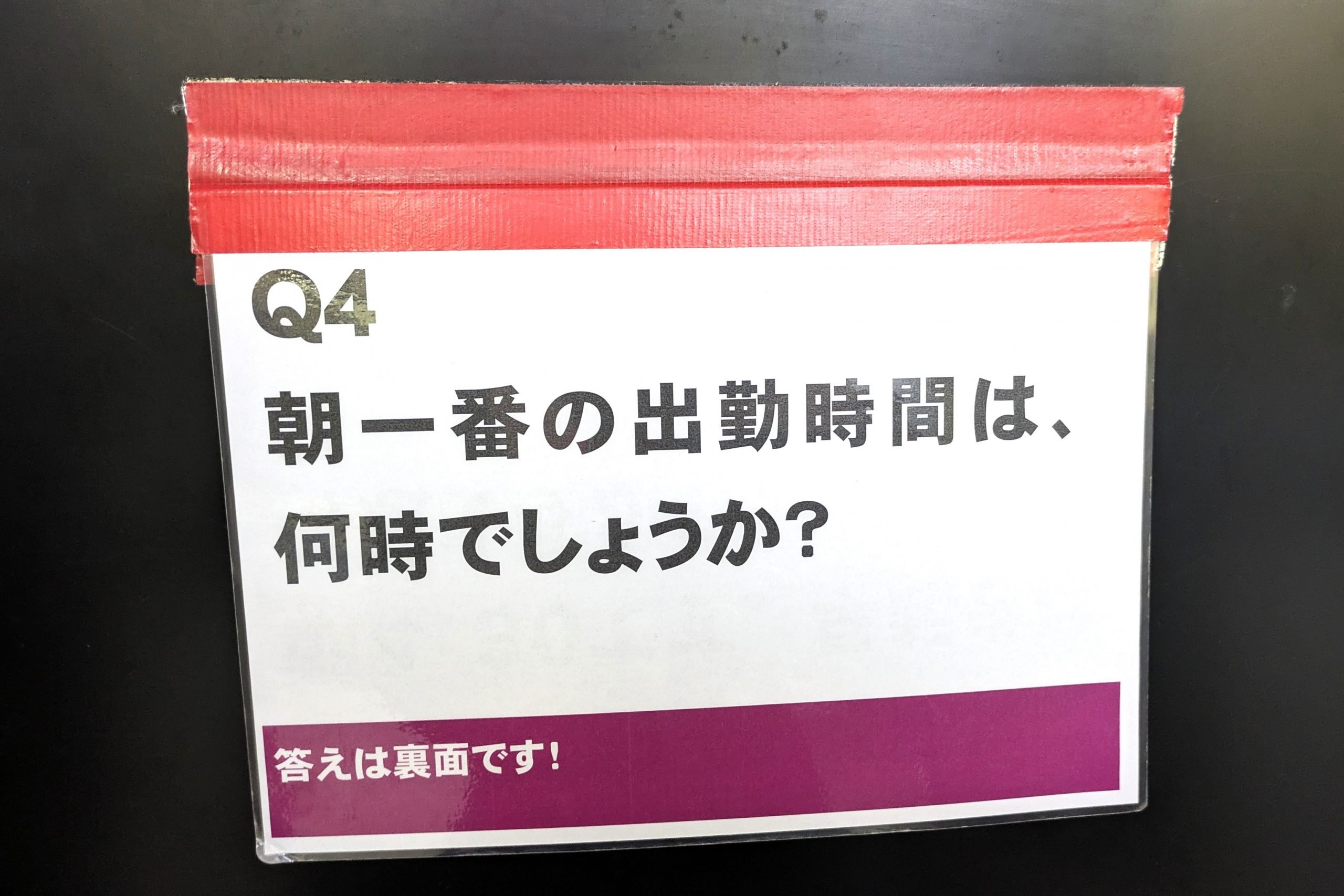 朝一番の出勤時間は何時でしょうか?という問題。「すごく早そう」と予想しながら答えをめくると―