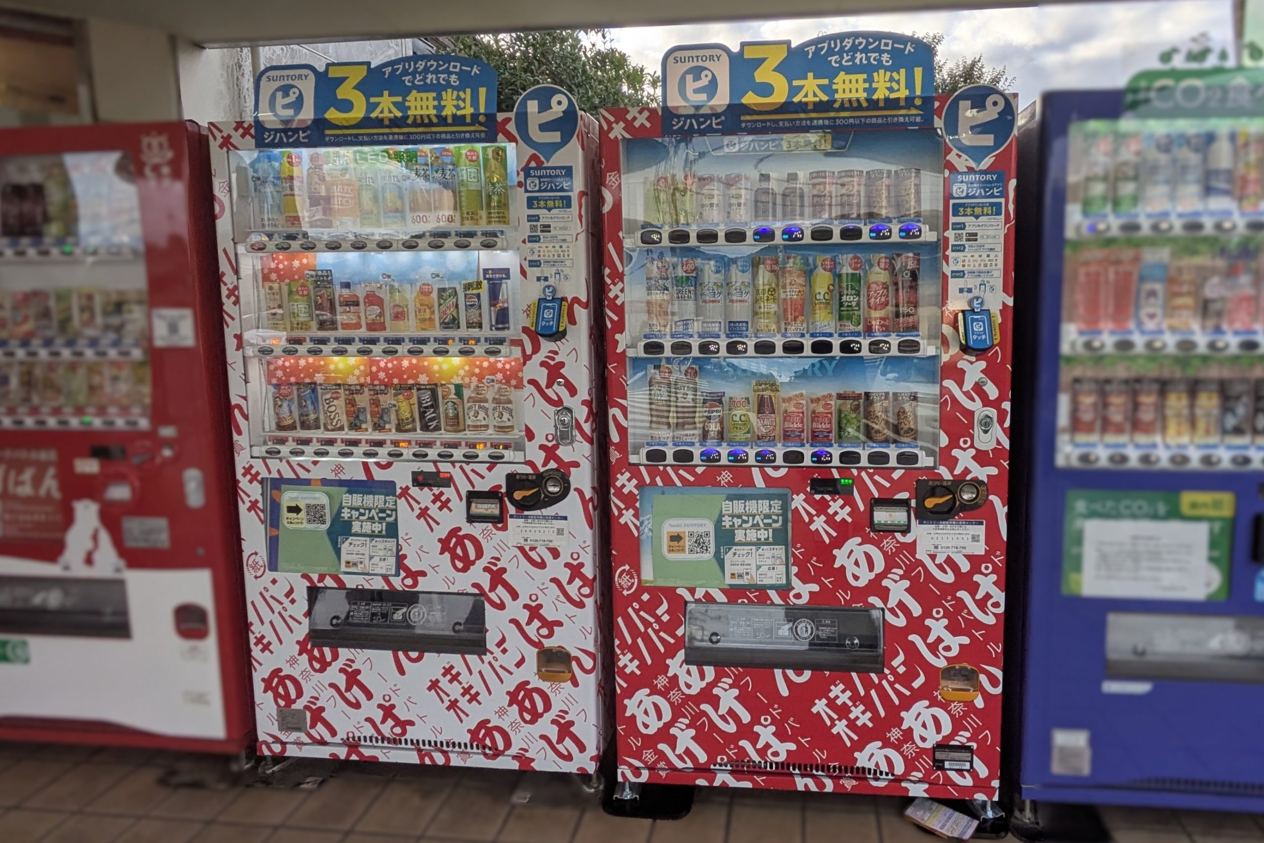 続いて発見したのは、オリジナルデザインの自動販売機。