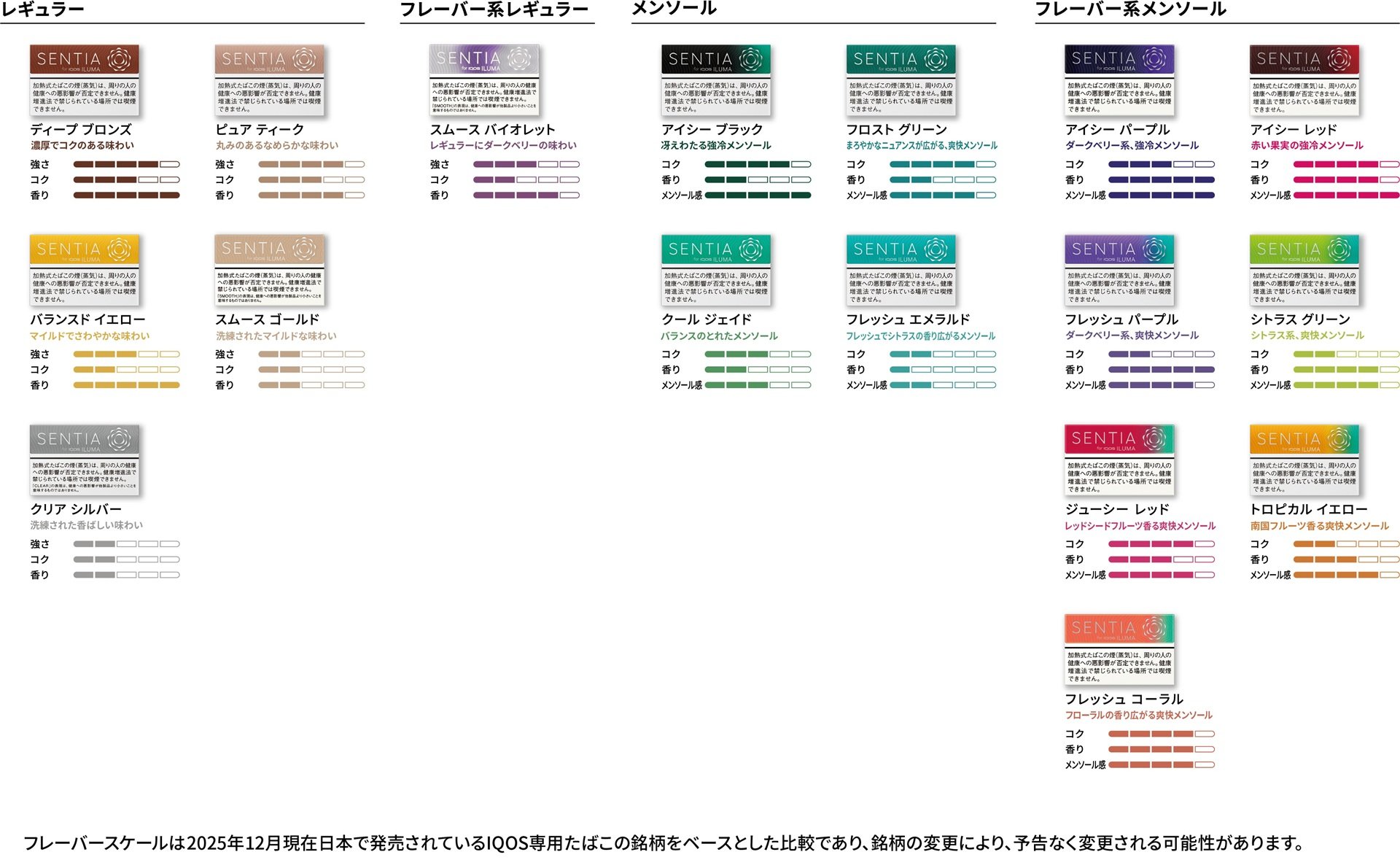 「フレーバー系メンソール製品を愛用する20歳以上の喫煙者の中でも、特に強メンソールシリーズの製品を好む方に向けて、より充実したラインアップからお好みの味わいを見つけていただきたい」と、センティア製品のラインアップ強化の背景を説明している。