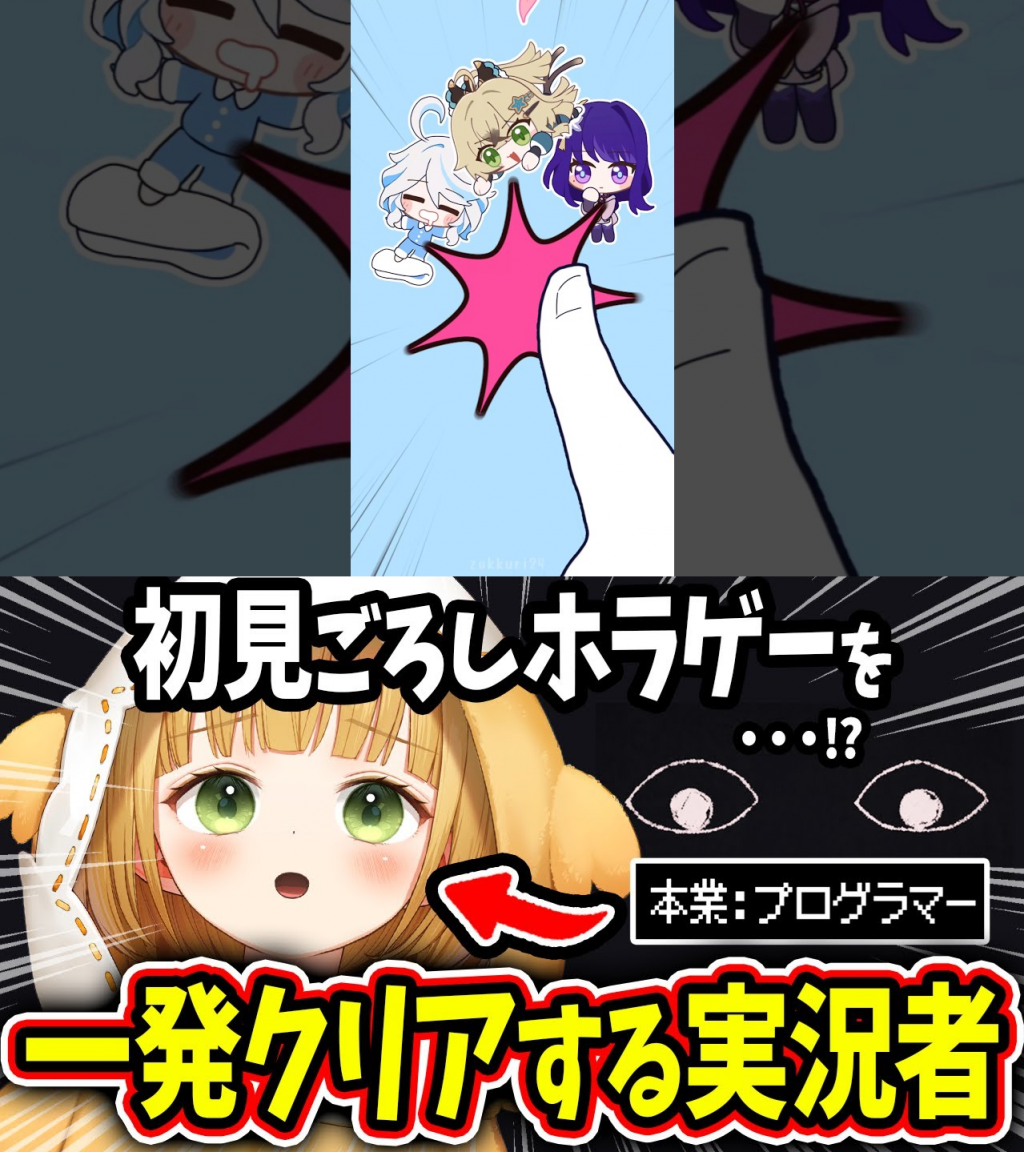じんむさん:「おすすめは『プログラマー実況者がタイピングホラゲー『DYPING』を一発クリアしてしまう』というタイトルの動画です。私は『プログラマー』として働かせていただいておりまして、その知識を活かして、普通は周回しないとクリアが難しいゲームを一発でクリアしてしまったという配信の切り抜きです 。 現在70万再生(※インタビュー時点)と大変ありがたいことに、沢山の方に見つけていただいた動画かつ、このゲームの面白さをプログラマー実況者の視点として、ユニークに伝えさせていただくことができていると嬉しい動画になります 。