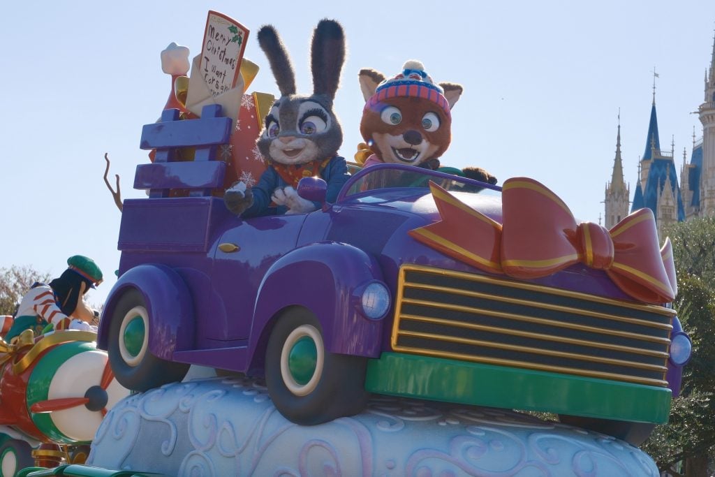 このパレードは、サンタクロースがおもちゃを作るトイファクトリーから始まり、ミッキーやミニーなどのディズニーキャラクターたち、さらには、クリスマスの魔法によって心を持ったくるみ割り人形やテディベア、乗り物のおもちゃたちが続々と登場し、ディズニーらしいユニークでにぎやかでかけがえのないマジカルなクリスマスを演出してくれます。