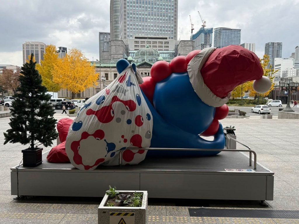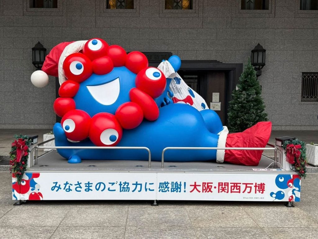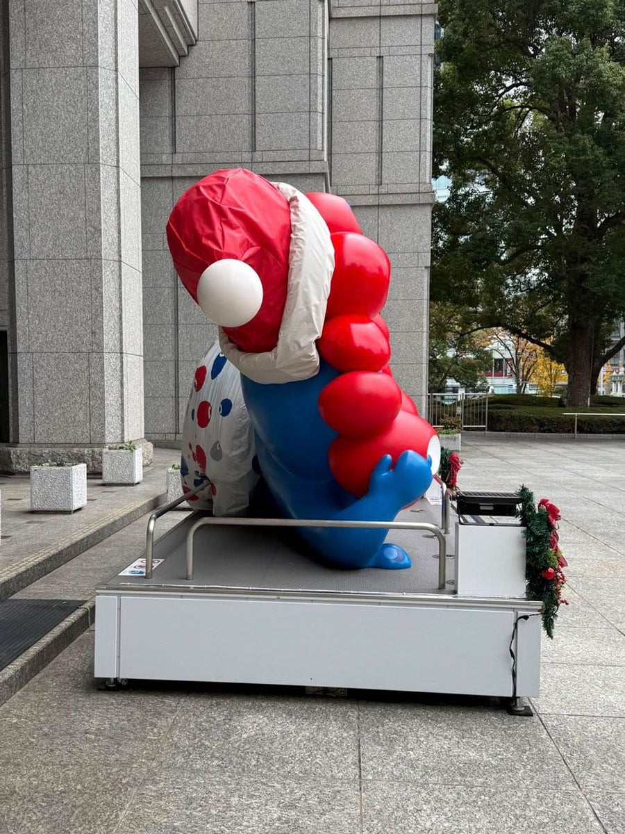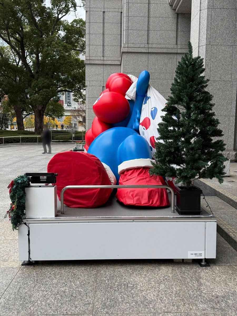 流行語大賞でも大人気のミャクミャク 大阪市役所前のモニュメントはサンタクロース仕様に