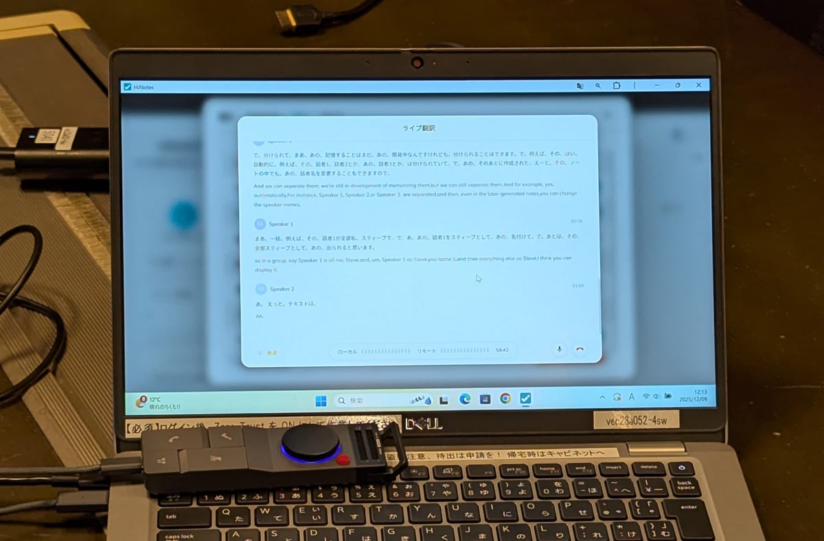自分のワイヤレスイヤホンをつないで使えるAIレコーダー「HiDock P1」「HiDock P1 mini」は文字起こし無料 有料機能のライブ翻訳をデモ