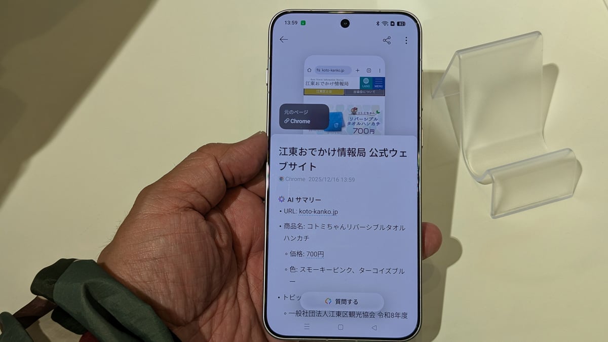 独自のAIアシスタント「AIマインドスペース」を搭載。ディスプレイから見て左側面にある物理キー「Snap Key」を押すとAIが表示画面を分析して要約・分類・タグ付けしてくれる機能が利用できます。