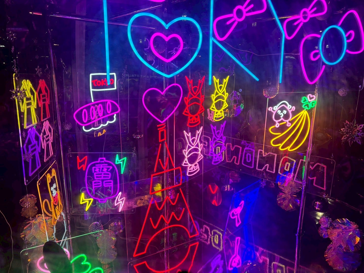 あちらこちらにネオンアートが点在!
