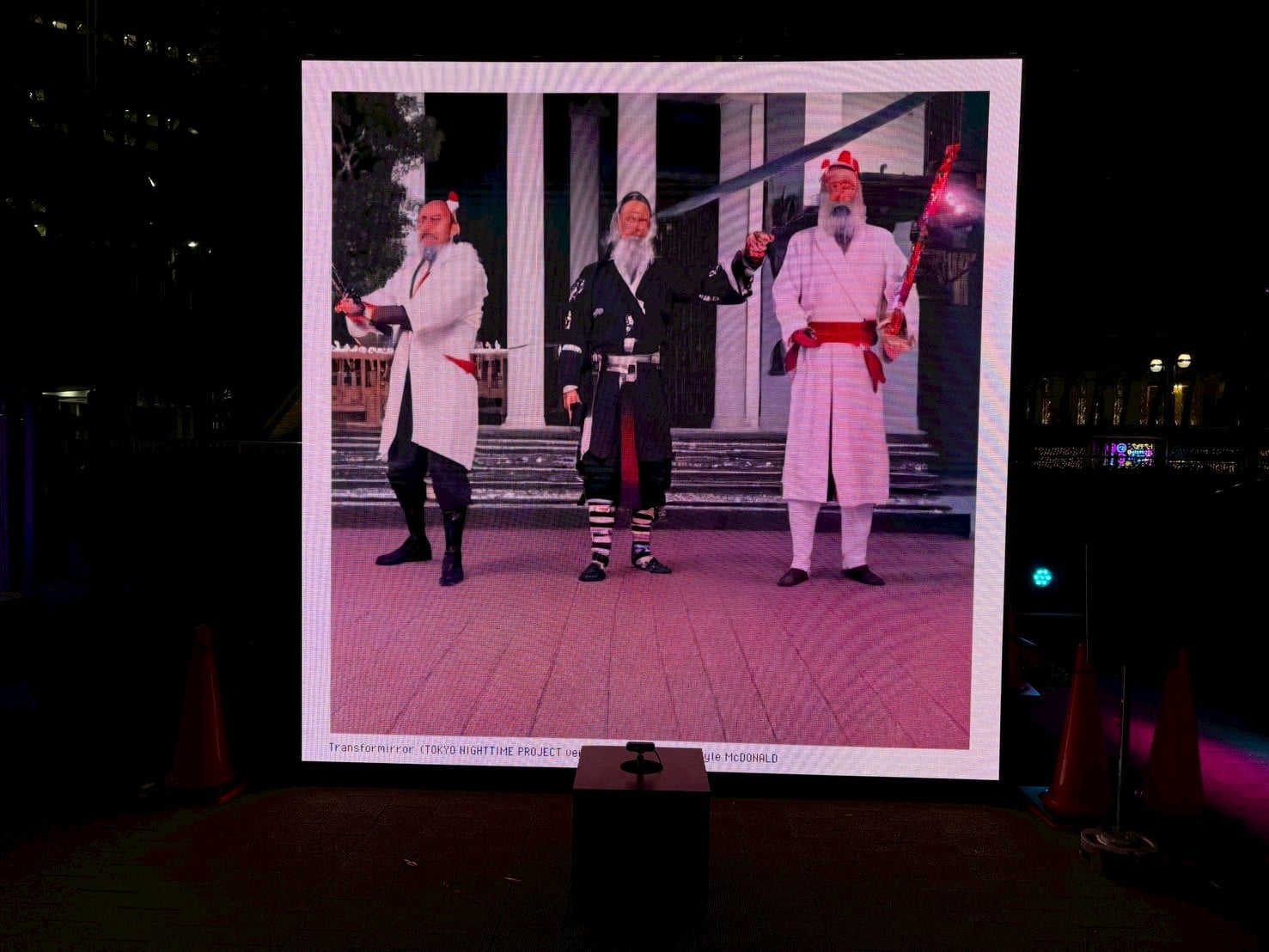 こちらは大きなサイネージが突如出現。目の前に立ってみると……なんと全く違う姿に変身!? この作品は『Transformirror(TOKYO NIGHTTIME PROJECT ver.)』。